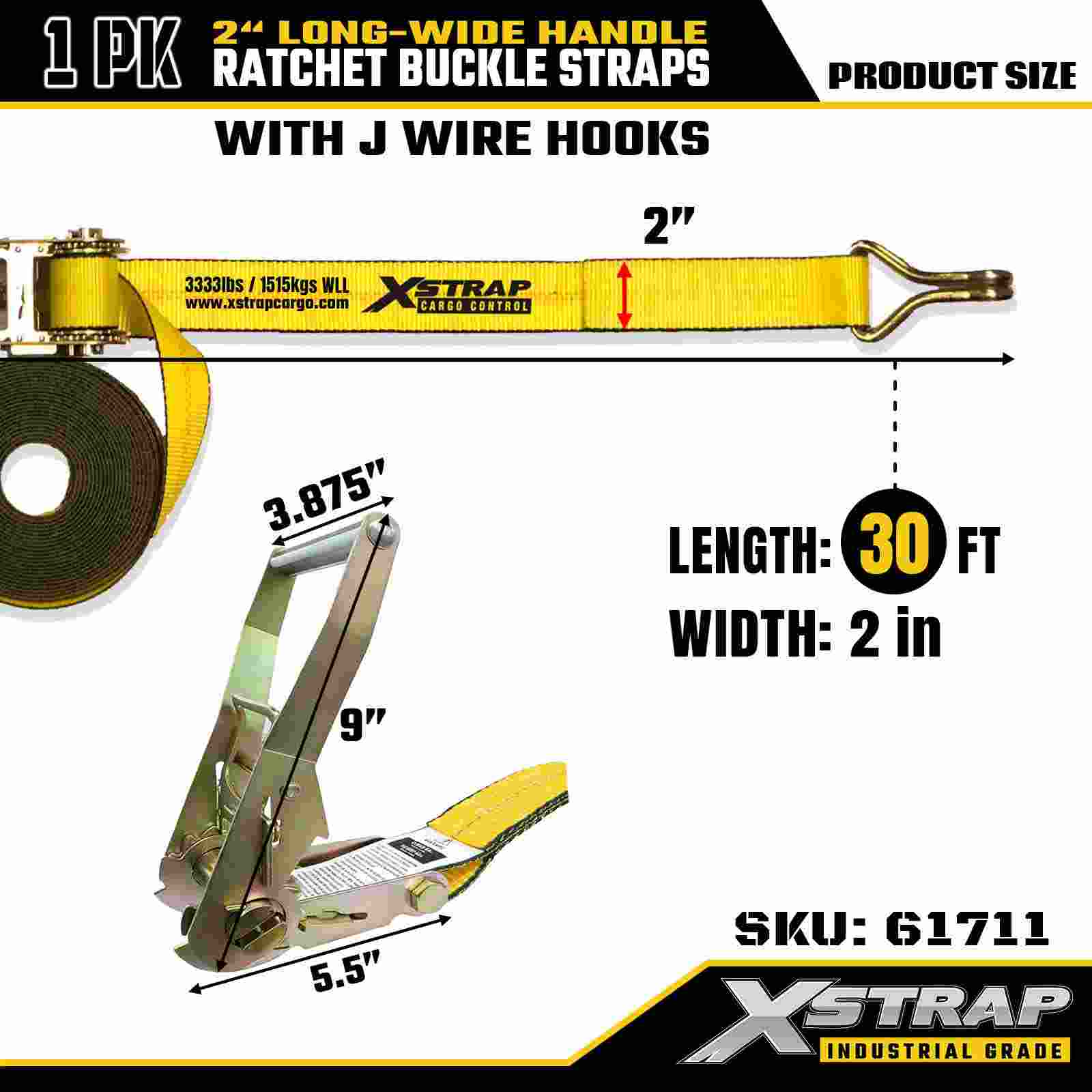 Xstrap 61711 Premium räikkäsidontanauhat 2" x 30 jalkaa (1 kpl) lankakoukuilla, 10 000 lbs murtolujuus, raskas sidonta vaativaan kuljetukseen