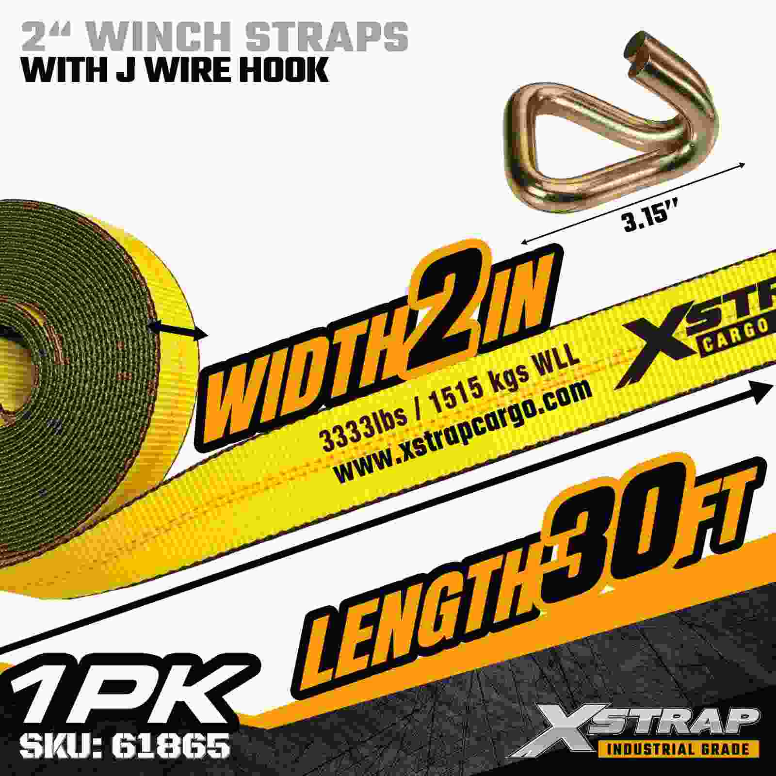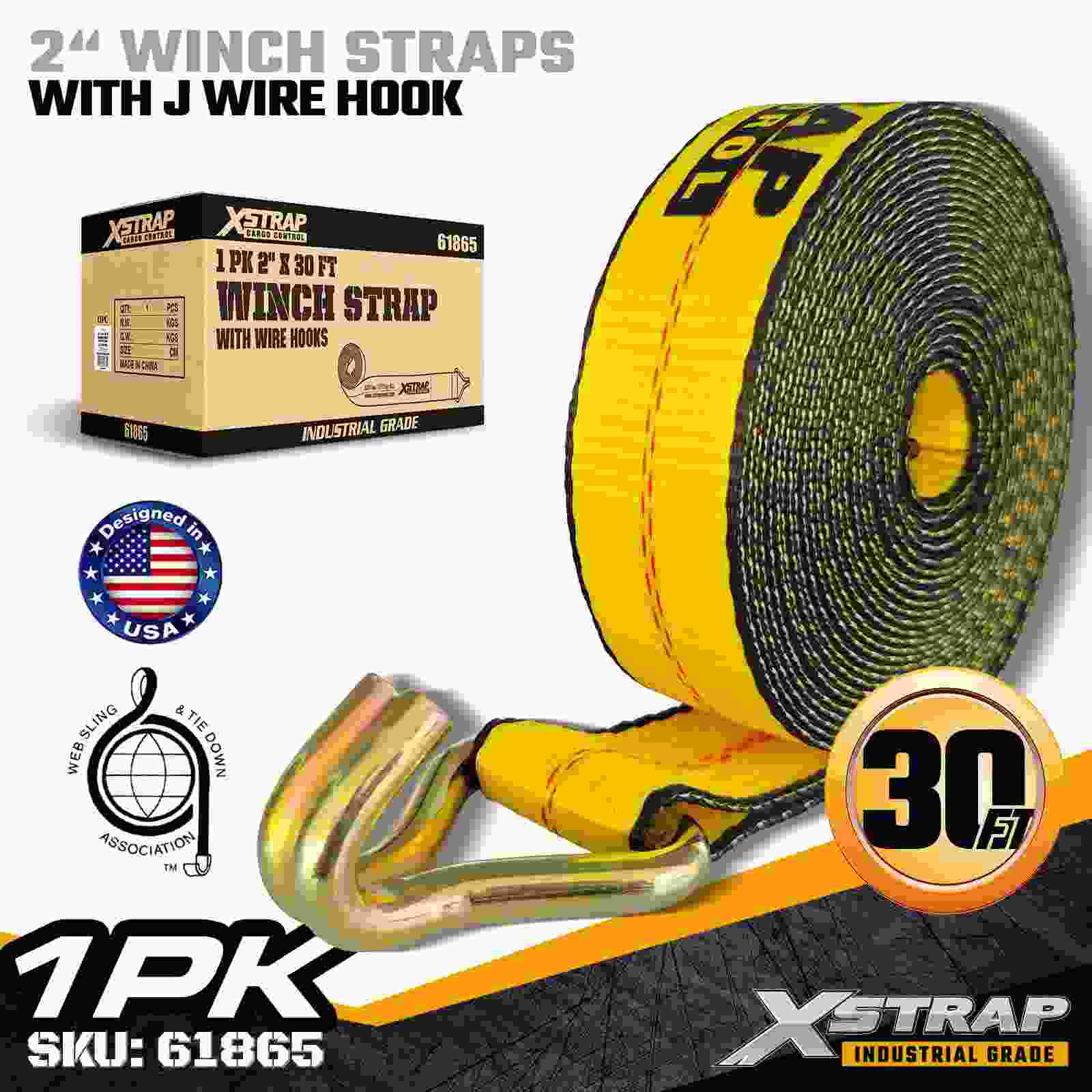 Xstrap 61865 2" × 30 ft Standard Winch Strap on raskaaseen kuormankiinnityshihna, joka on suunniteltu lavaperävaunuihin ja ammattikuljetuksiin. Vahvistetulla lankakoukulla ja erittäin lujalla polyesterinauhalla rakennetussa 2 tuuman vinssihihnassa on 3 333 lbs ja -rengas työkuormitus10,0ak0akl. tarjoaa luotettavan suorituskyvyn puutavaran, kuormalavojen, putkien, koneiden ja yleisen rahdin kiinnittämiseen päivittäisten kuljetusoperaatioiden aikana.