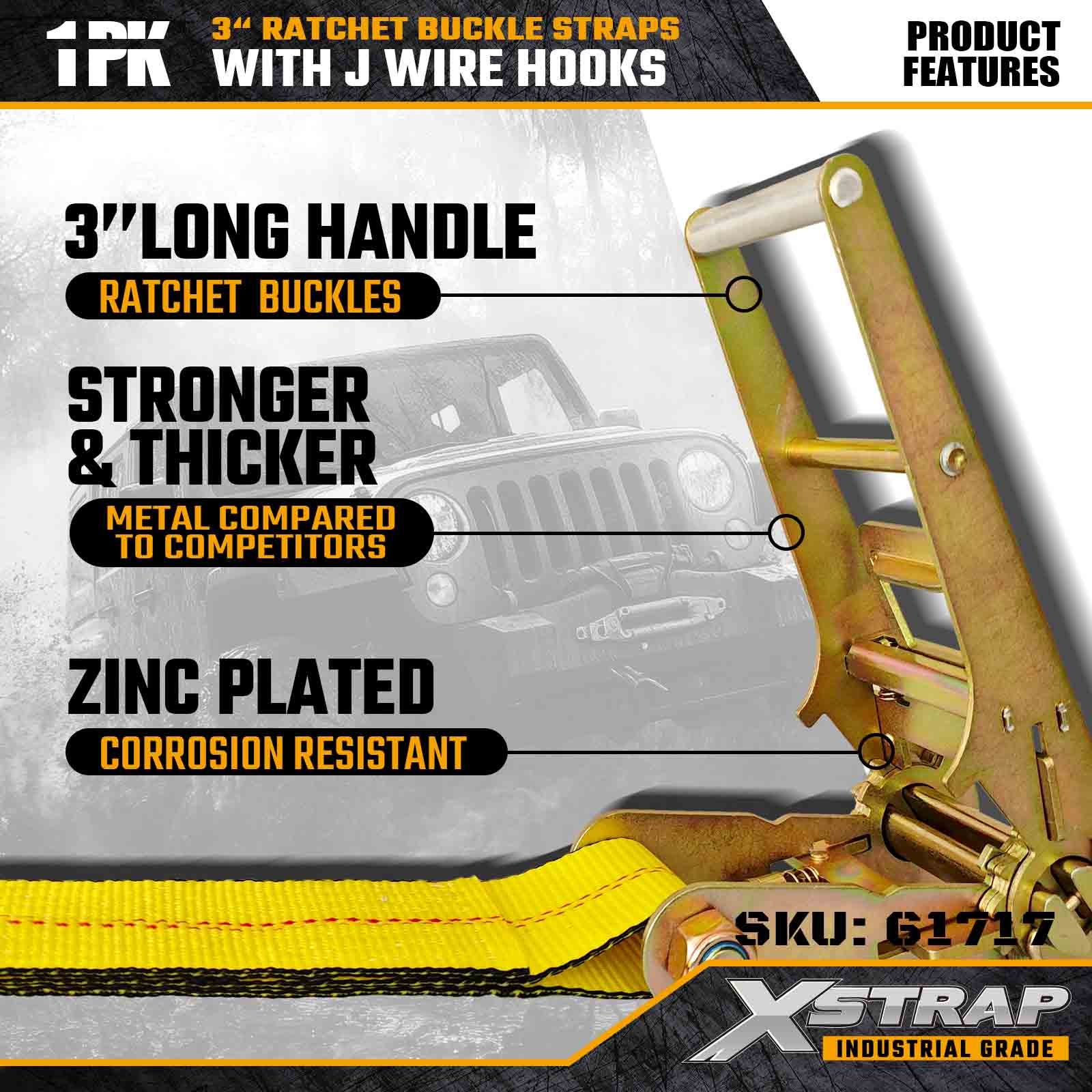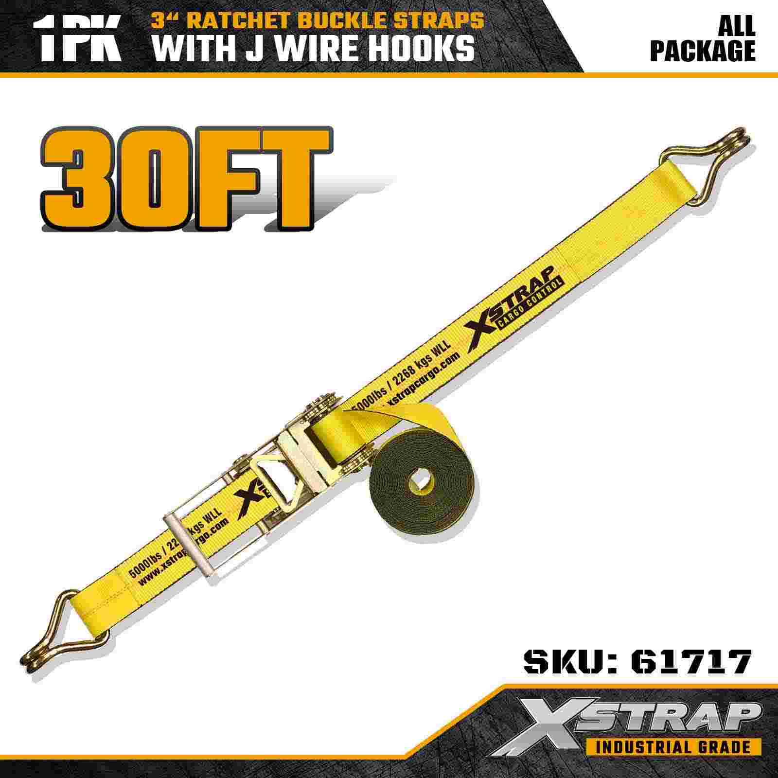 Xstrap 61717 3" × 30 ft Räikkä solki Strap (1-pakkaus) on suunniteltu vaativiin lastikohteisiin, ja siinä on vahvistetut lankakoukut ja korkeajänniteinen räikkäjärjestelmä. 5 000 naulan työkuormitusrajalla ja 15 000 lbs:n teollisilla kuljetusvälineillä. logistiikka.