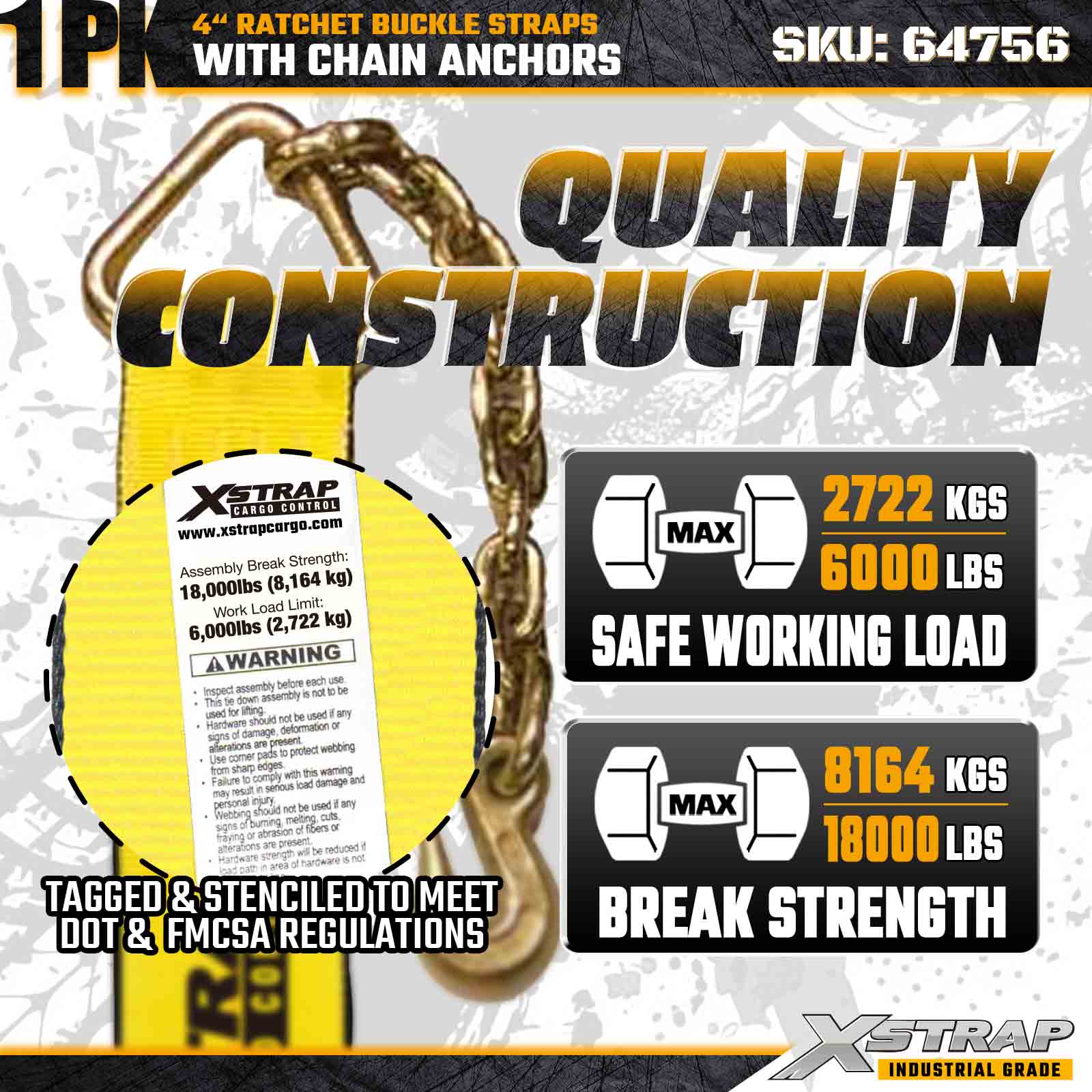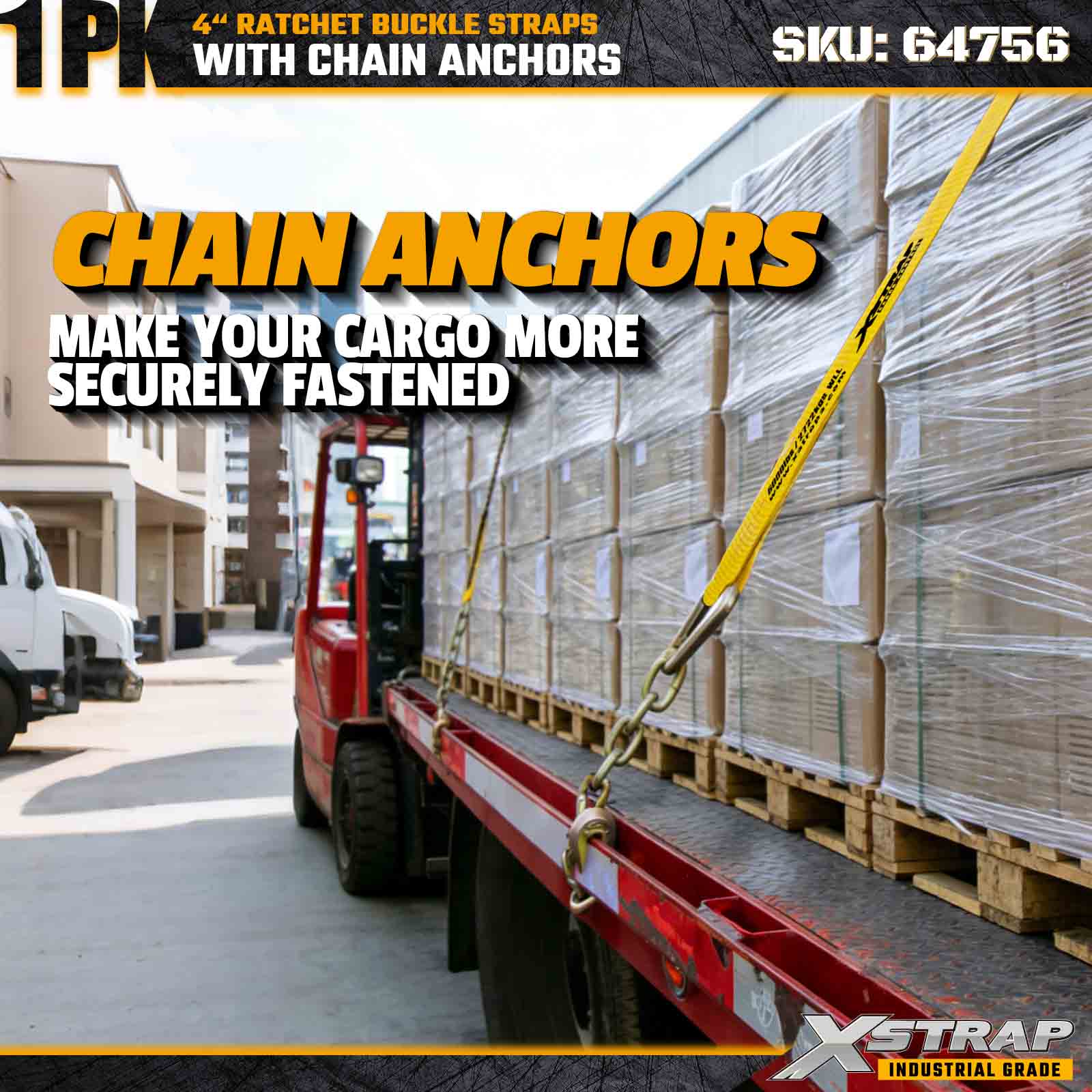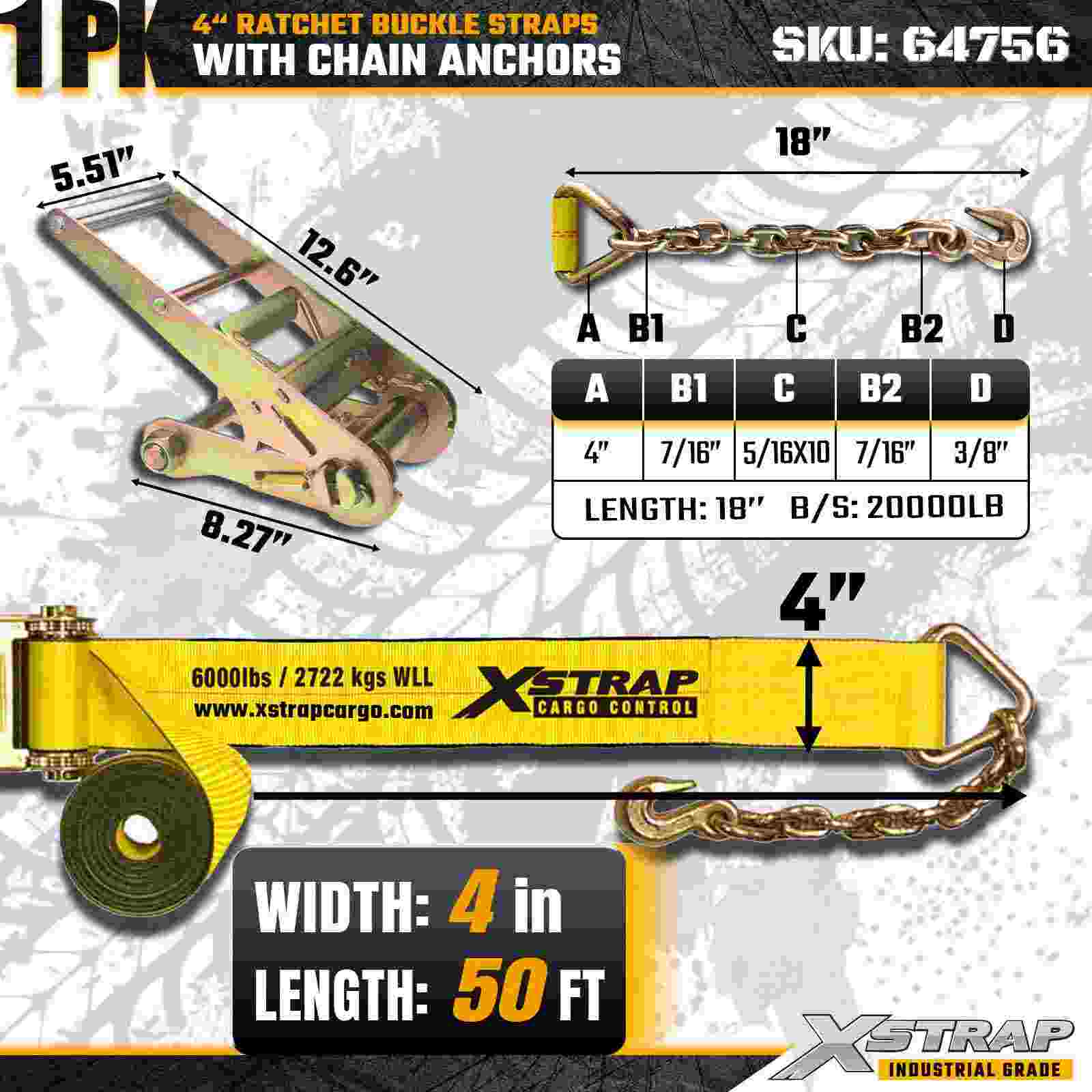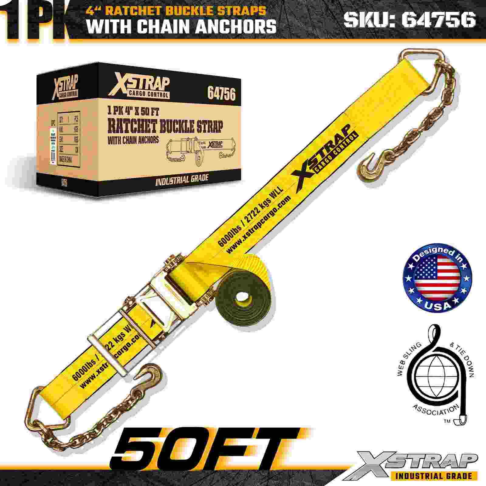 Xstrap 64756 4" × 50 jalkaa räikkäsoljen hihna ketjun ankkureilla murtolujuus 18 000 lbs (1 pakkaus)