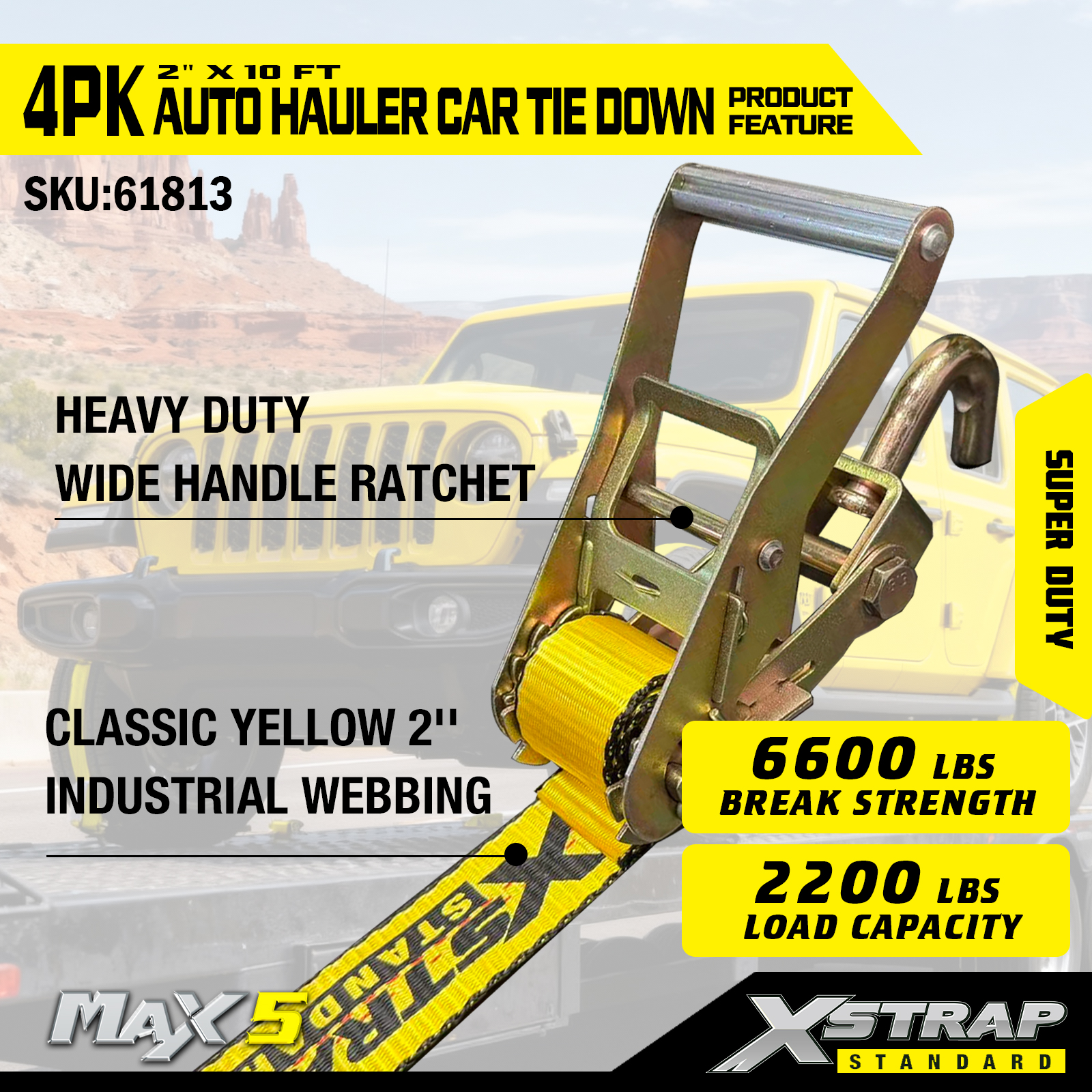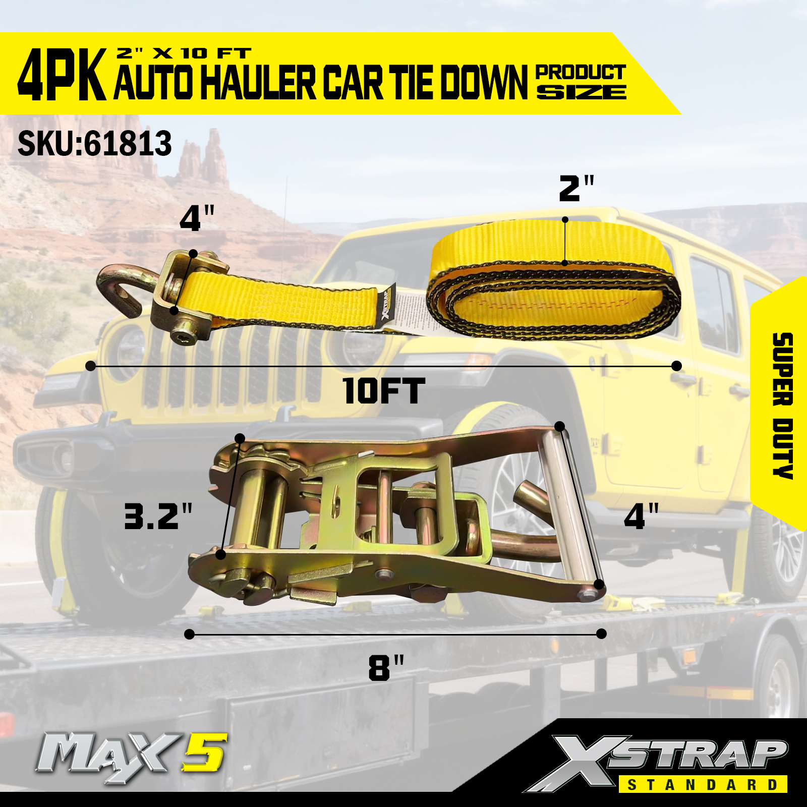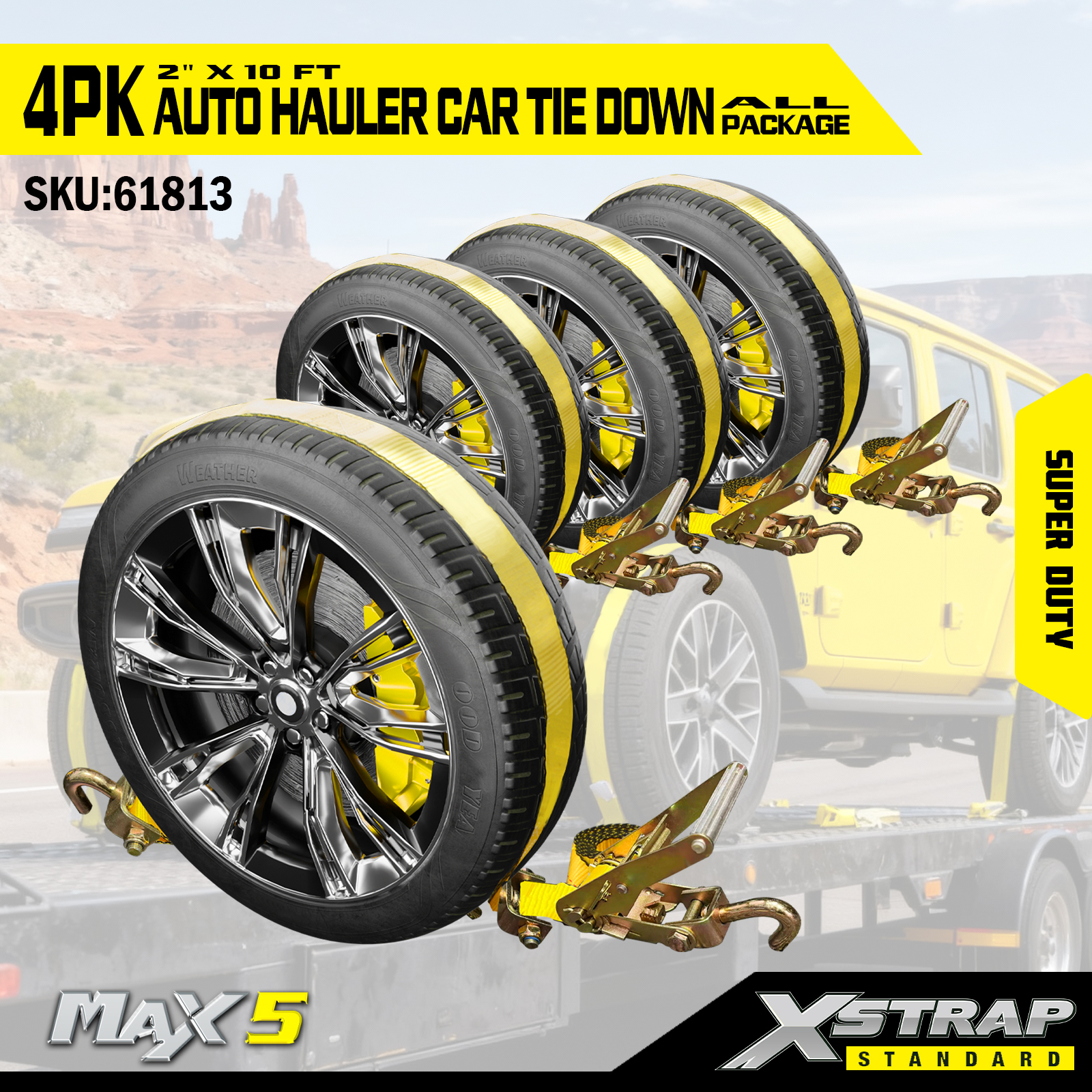 Xstrap-autojen kuljetushihnat, raskaat 6 600 lbs:n murtolujuus – renkaiden kiinnityshihnat peräkärryihin, renkaiden kiinnityshihnat kumikiinnikkeillä maastoautoille, kuorma-autoille, mönkijöille ja UTV:lle