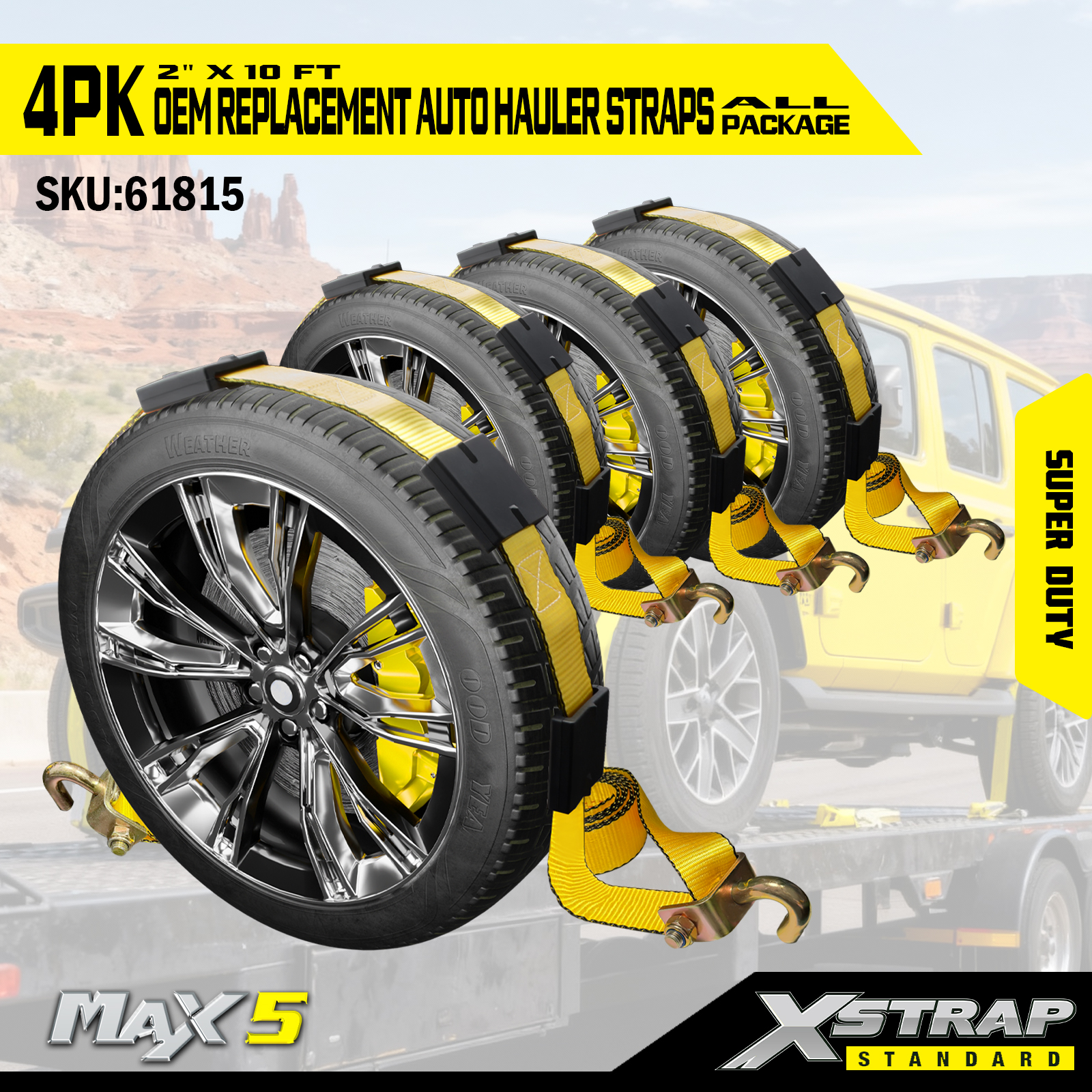 Xstrap-autojen kuljetushihnat, raskaat 6 600 lbs:n murtolujuus – renkaiden kiinnityshihnat peräkärryihin, renkaiden kiinnityshihnat kumikiinnikkeillä maastoautoille, kuorma-autoille, mönkijöille ja UTV:lle