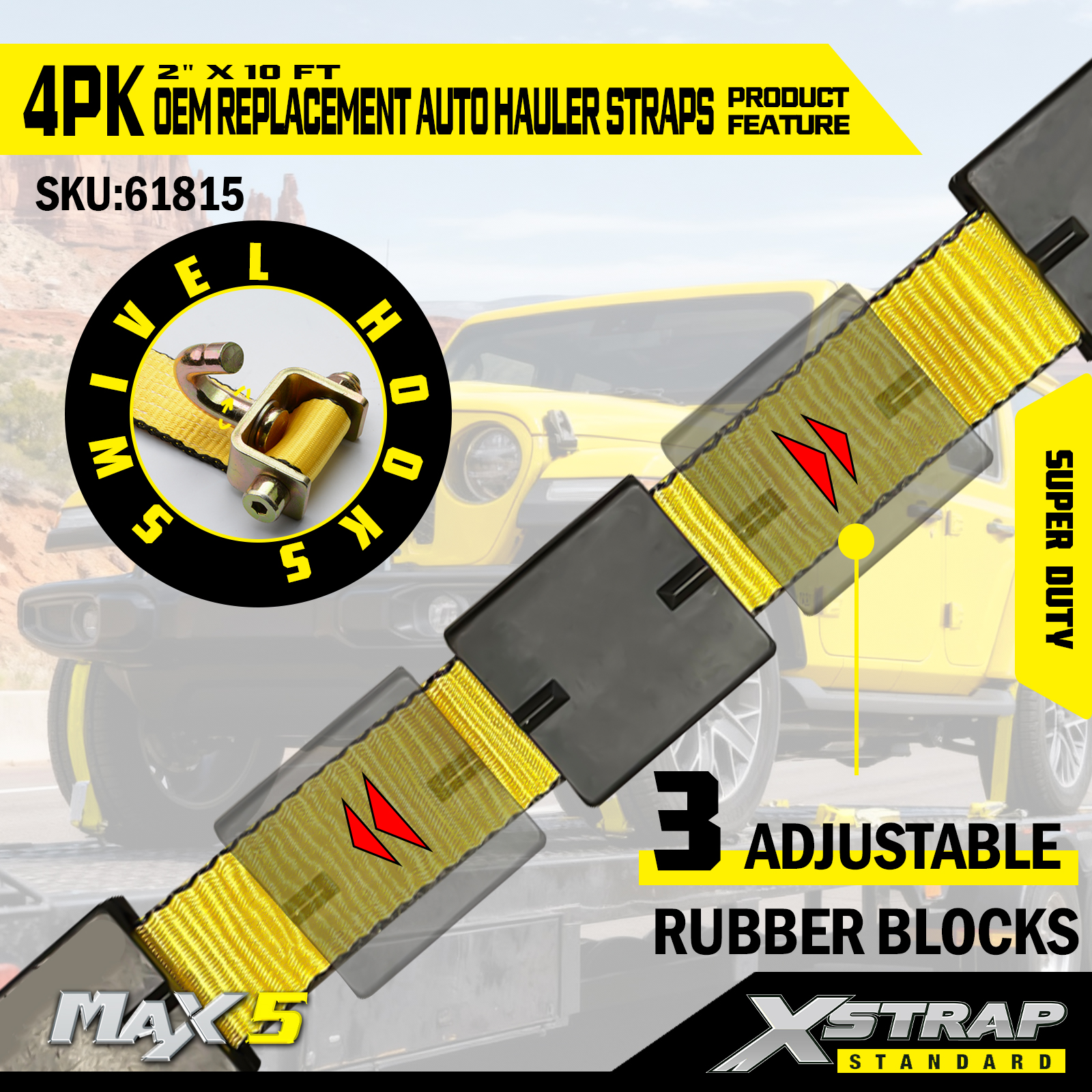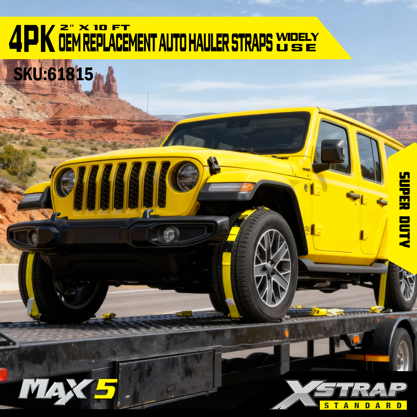 - Teollisuusluokan nauha: 2" leveä klassinen keltainen nauha on viilto-, UV-kestävä ja rakennettu kestämään kovaa jännitystä - vastaa OEM-kestävyysstandardeja.