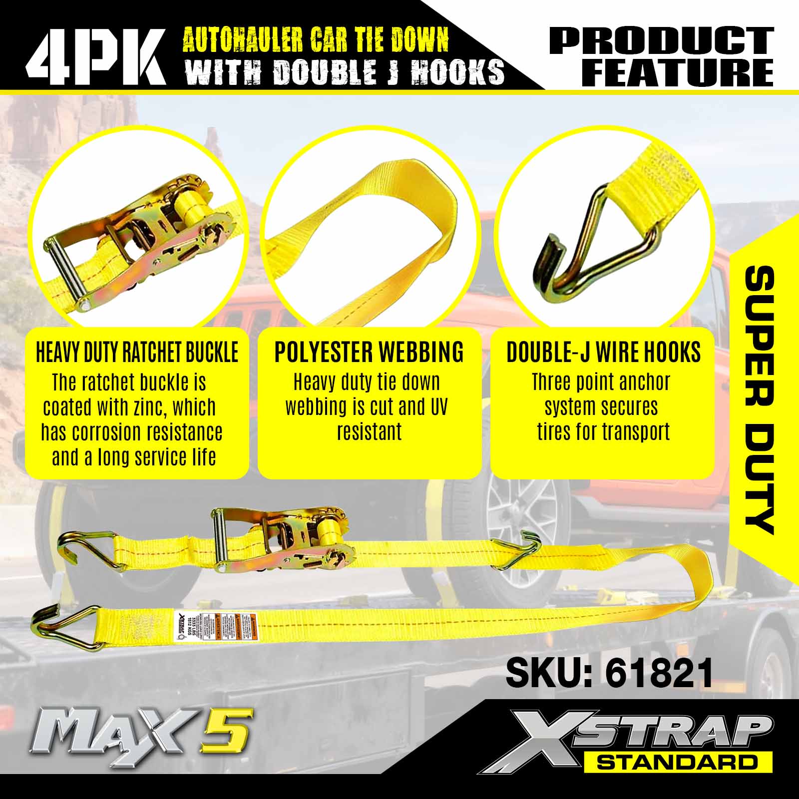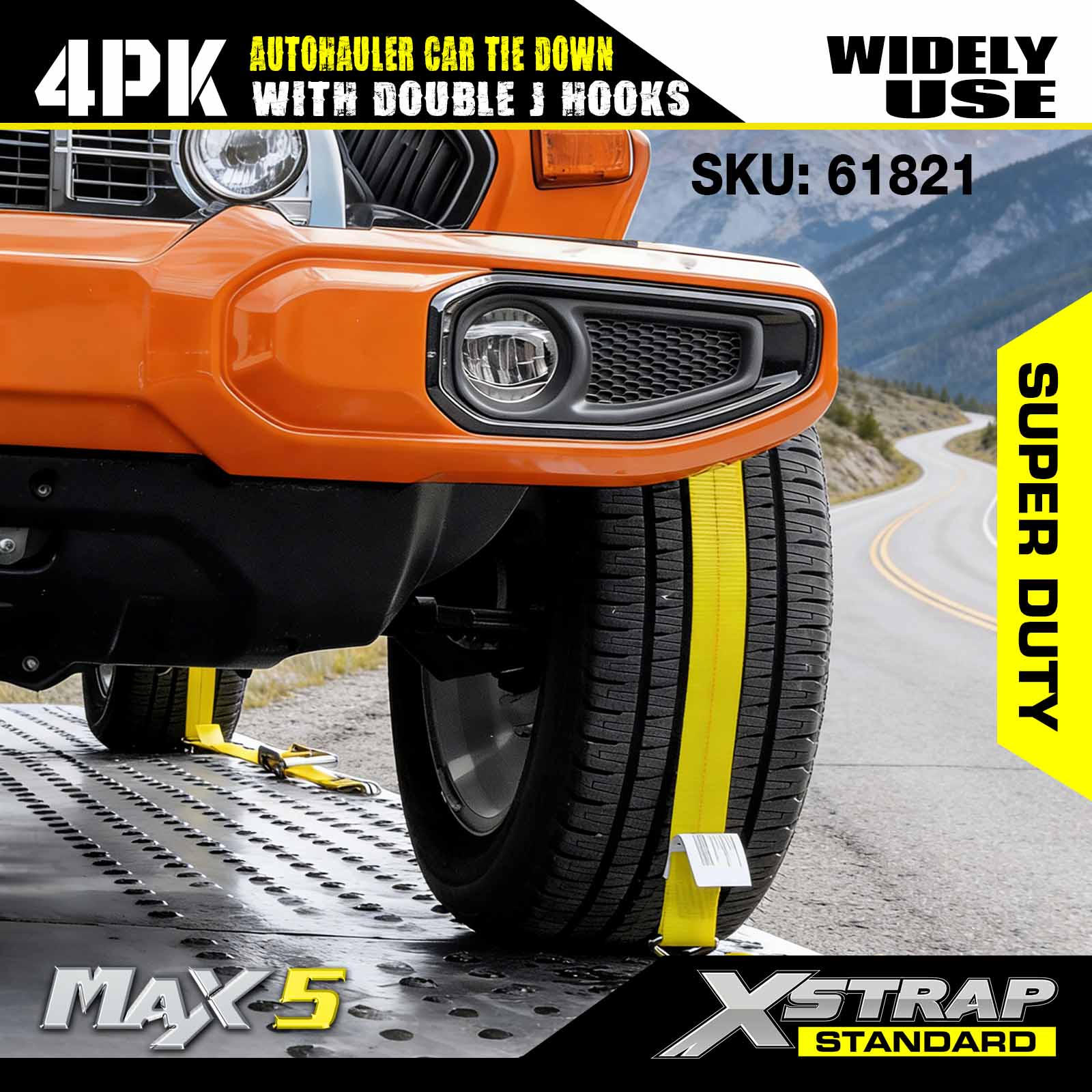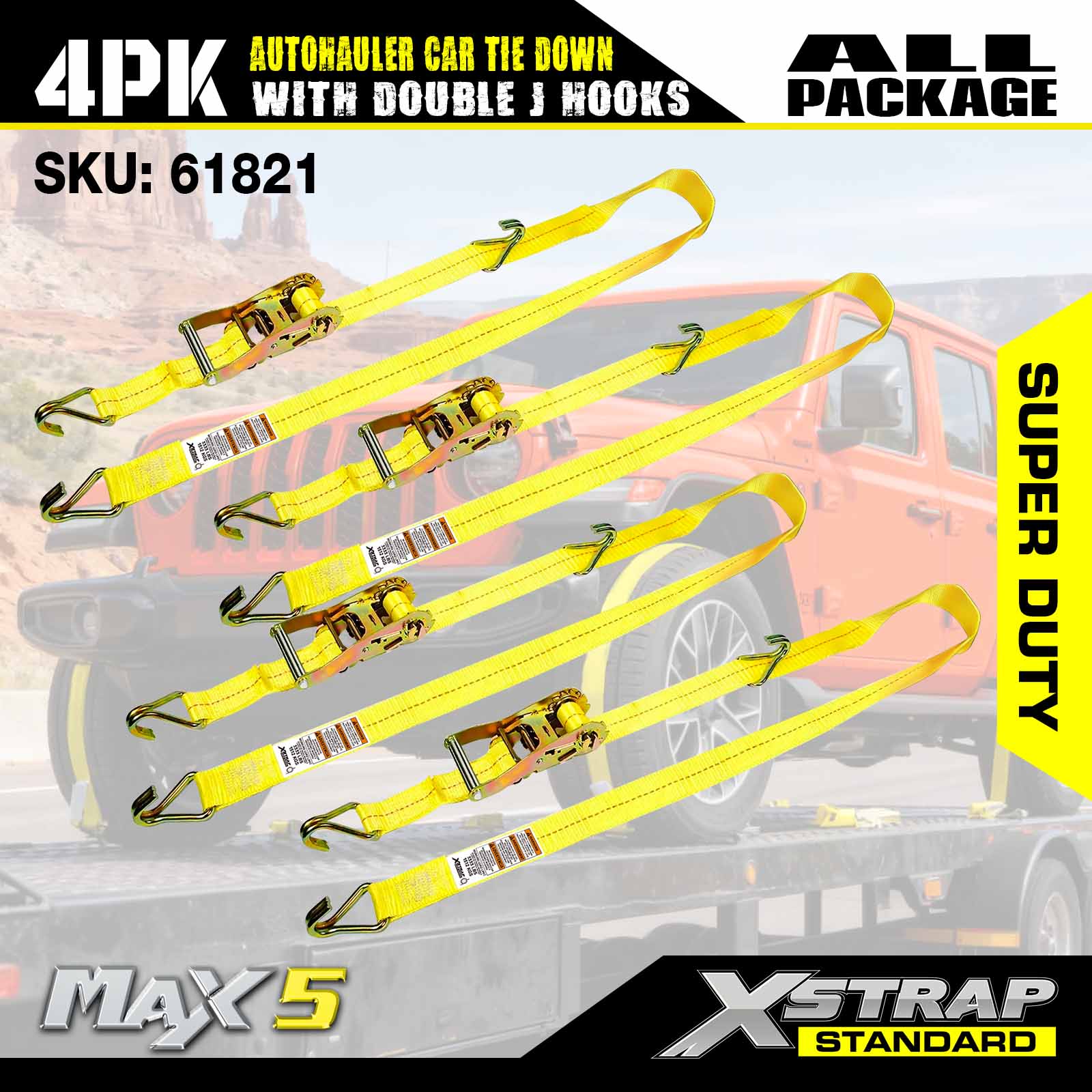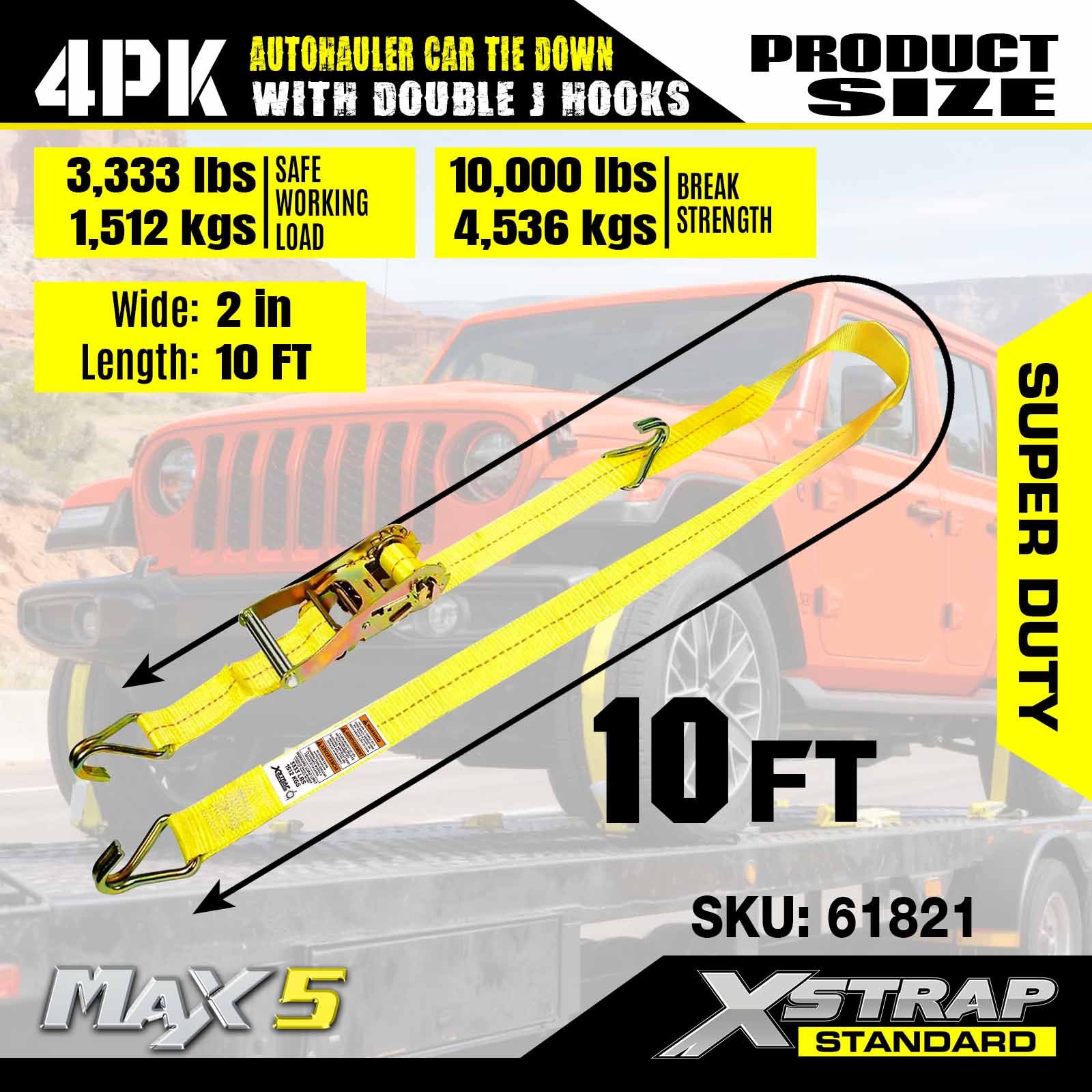 Xstrap-autojen kuljetushihnat, raskaat 10 000 paunaa murtolujuus – renkaiden kiinnityshihnat perävaunuihin, renkaiden kiinnityshihnat kumikiinnikkeillä maastoautoille, kuorma-autoille, mönkijöille, UTV:lle