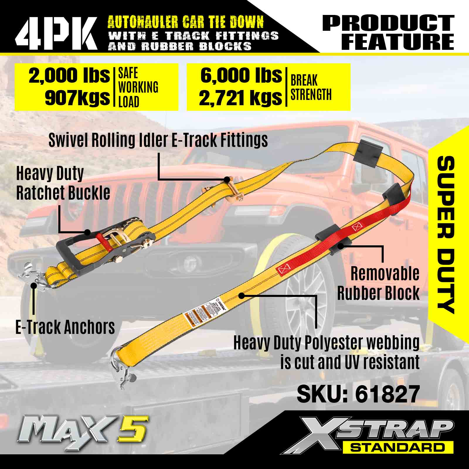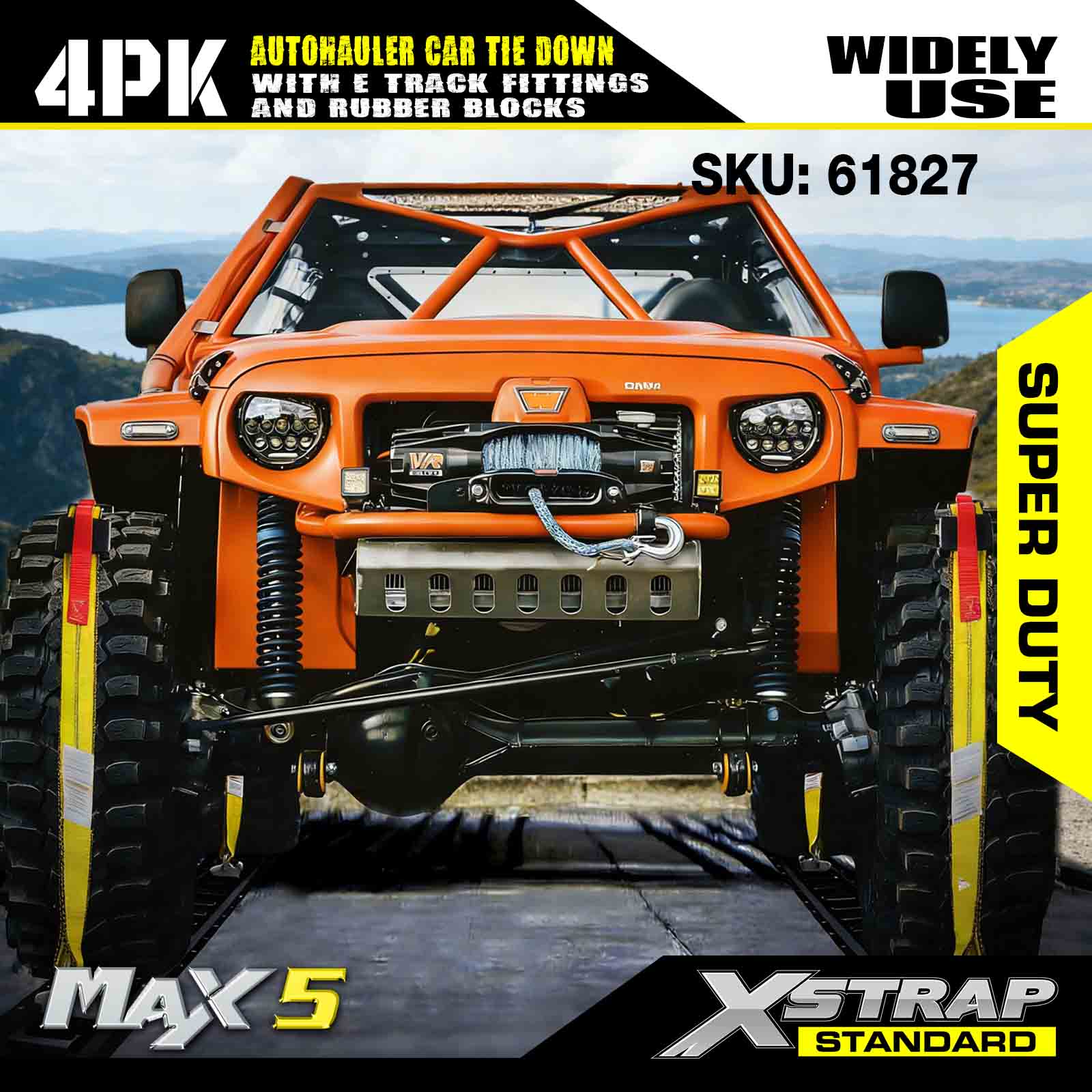 - Turvallisuus ja monipuolisuus: 2 000 naulan käyttökuormituksen ja 6 000 naulan murtolujuuden ansiosta nämä hihnat tarjoavat luotettavaa turvallisuutta maastoajoneuvoihin, kuorma-autoihin, mönkijöihin ja UTV:ihin – ihanteellisia vaativiin kuljetustarpeisiin.
