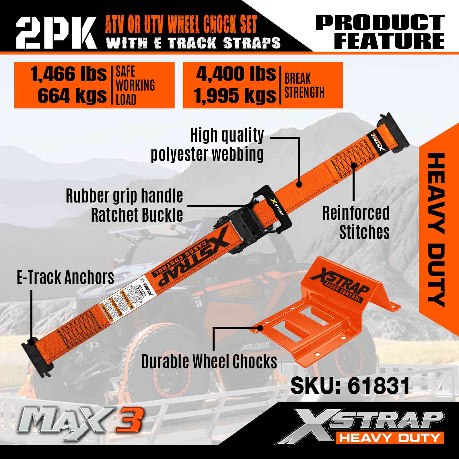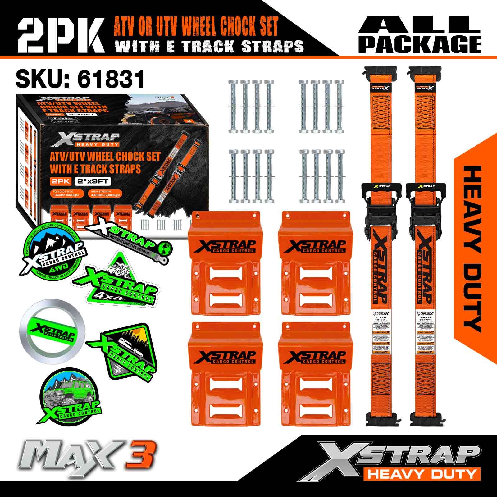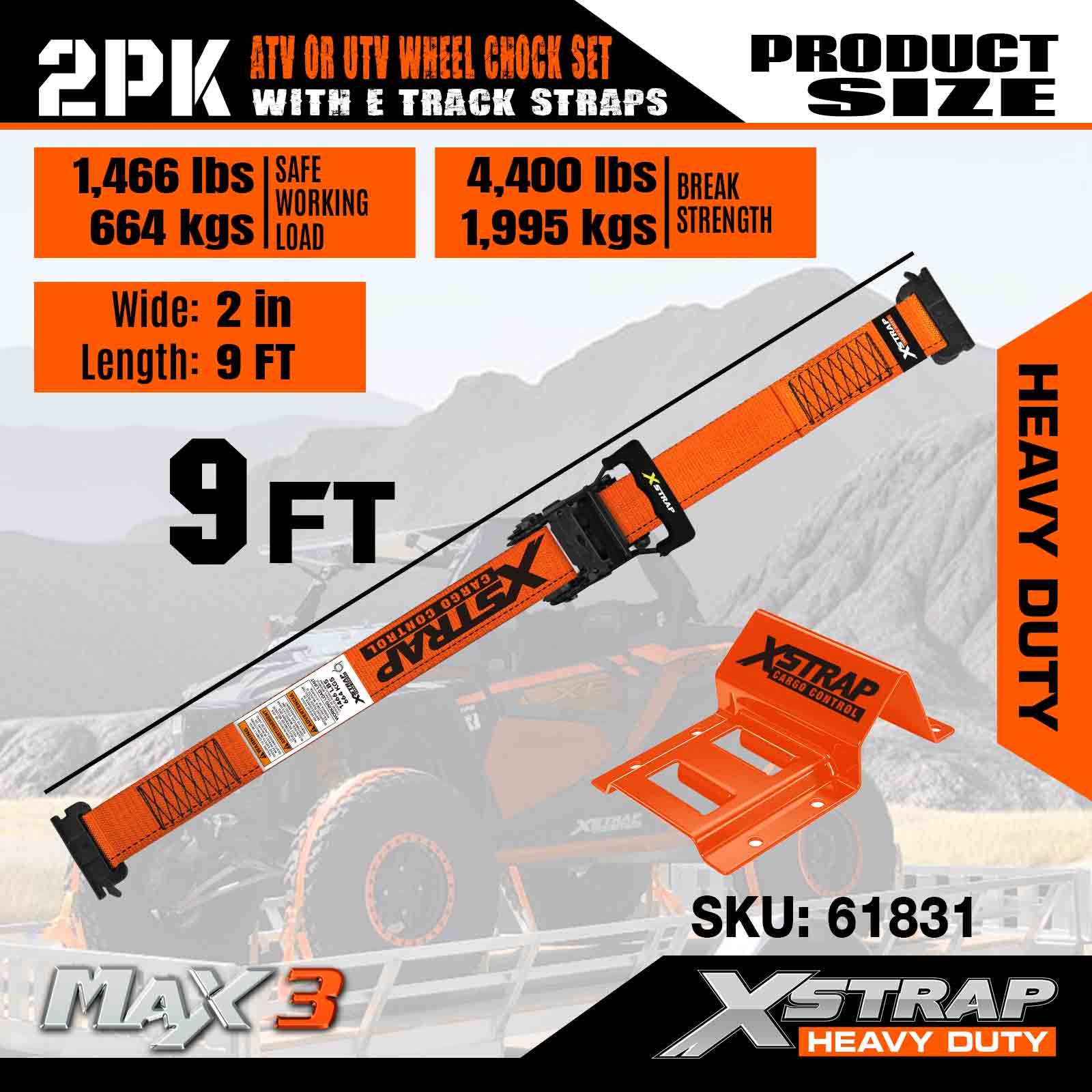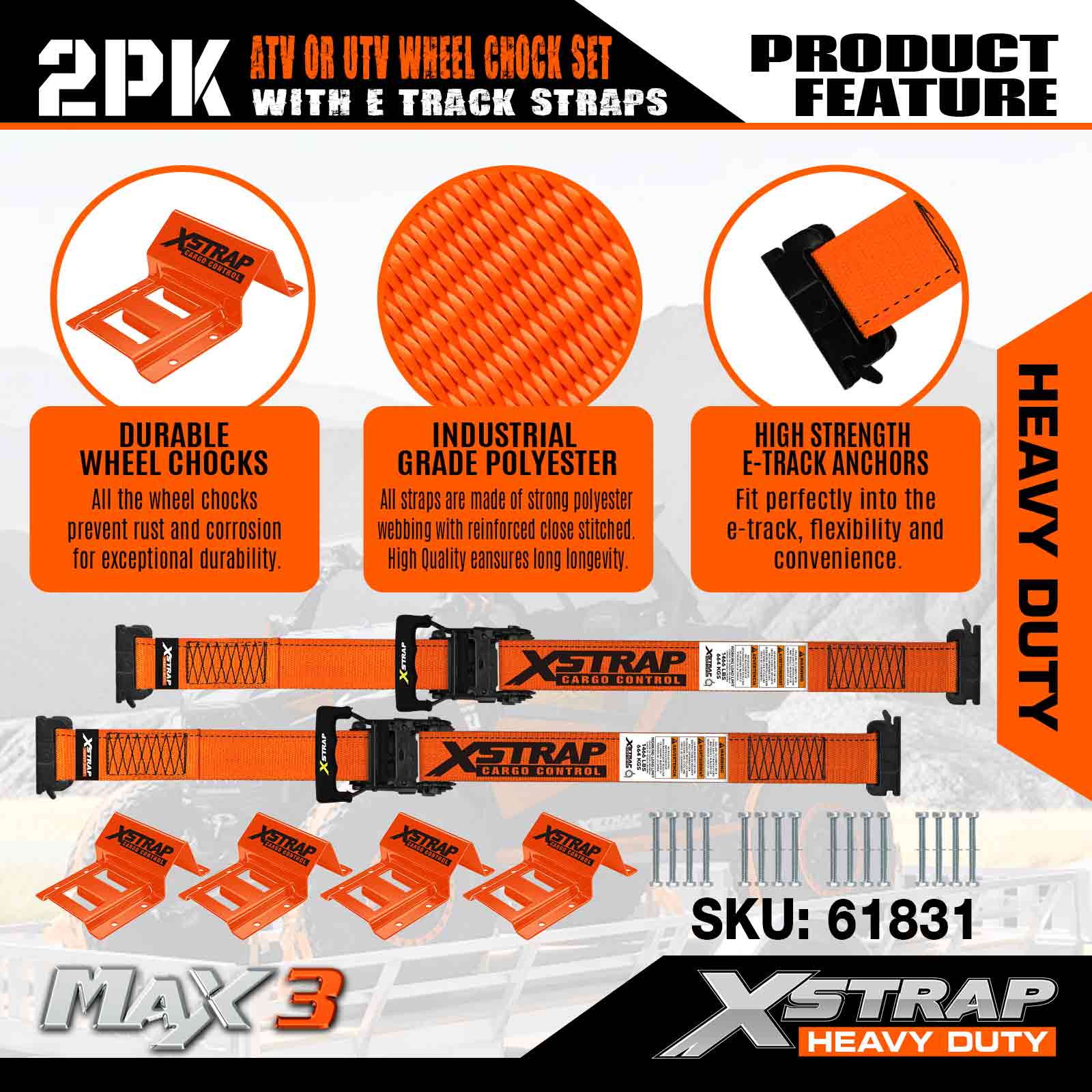 Xstrap UTV:n pyöräkiilan kiinnityssarja, 4 400 lb:n murtolujuus (4) raskaaseen käyttöön tarkoitettujen perävaunujen renkaiden räikkähihnat (8) pyöräkiilat – E-telajärjestelmä mönkijälle, UTV:lle, ruohonleikkurin nelipyöräiselle - oranssi