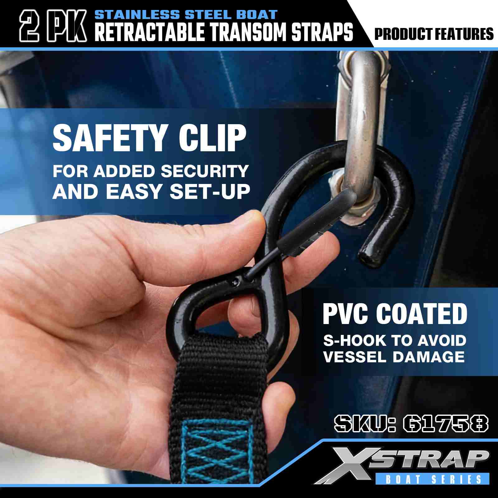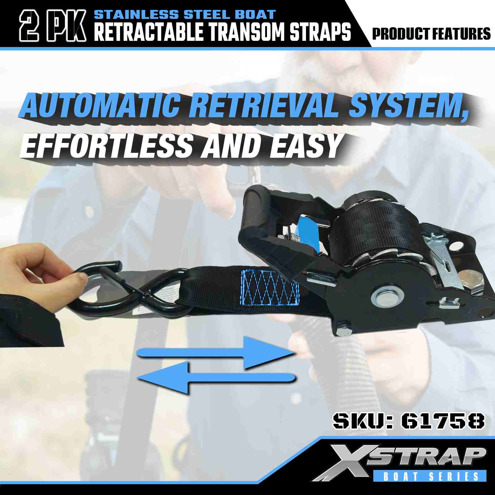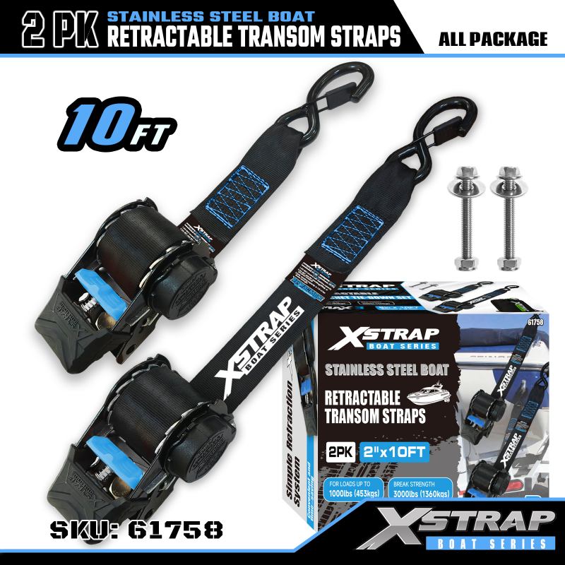 Xstrap 2PK -veneen sisäänvedettävä peräpeilihihna turva-S-koukuilla, 2" x 3,6" polyesterisidontahihna, sisäänvedettävä hihna, 1000 lbs:n kuormankiinnityshihnat S-turvakoukulla vakavalle ammattilaiselle rahtiperävaunun kiinnittämiseen, tasainen perävaunu, pieni, auton hiihtovene.