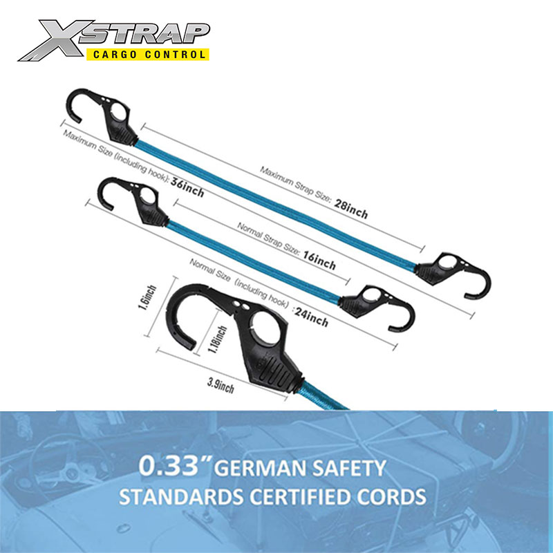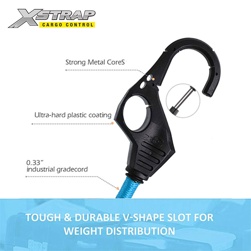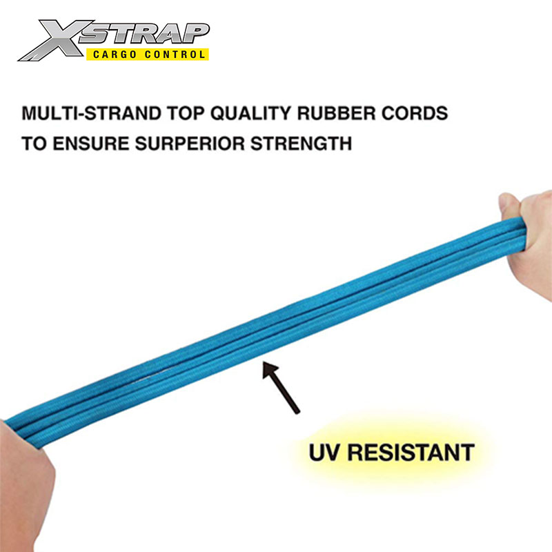 Erinomaisesta UV-kestävästä ristikudotusta kumista ja lateksista valmistetut sormenreikäkoukuilla varustetut benji-köydet eivät kulu ohuiksi tai katkea päivittäisessä käytössä tai erilaisissa ilmastoissa.
