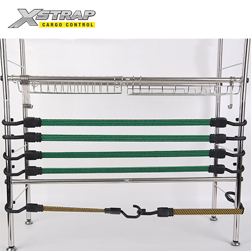 Tämä on meidän litteät benji-köydet koukuilla. Raskaaseen käyttöön koukuilla varustettuja litteitä benji-naruja käytetään retkeilyyn, telineen katolle, peräkärryyn ja lastin ohjaukseen.