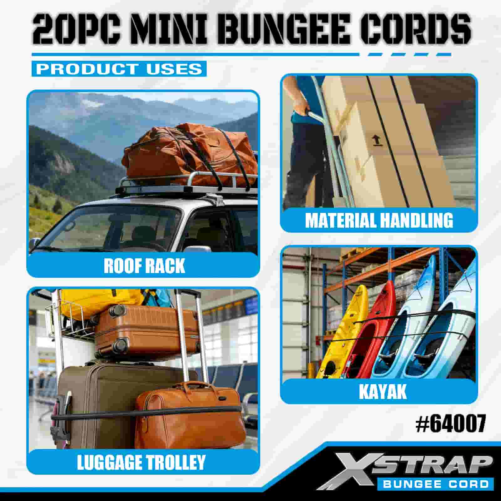 - Premium All Purpose Securing Solution: Nämä mini-benji-köydet on tehty päivittäiseen käyttöön ja pieniin kiinnitystöihin. Ne tuovat luotettavaa pitovoimaa kotiisi, autotalliisi, matkoihisi ja ulkoiluun vahvalla ja kestävällä suorituskyvyllä, johon voit luottaa.