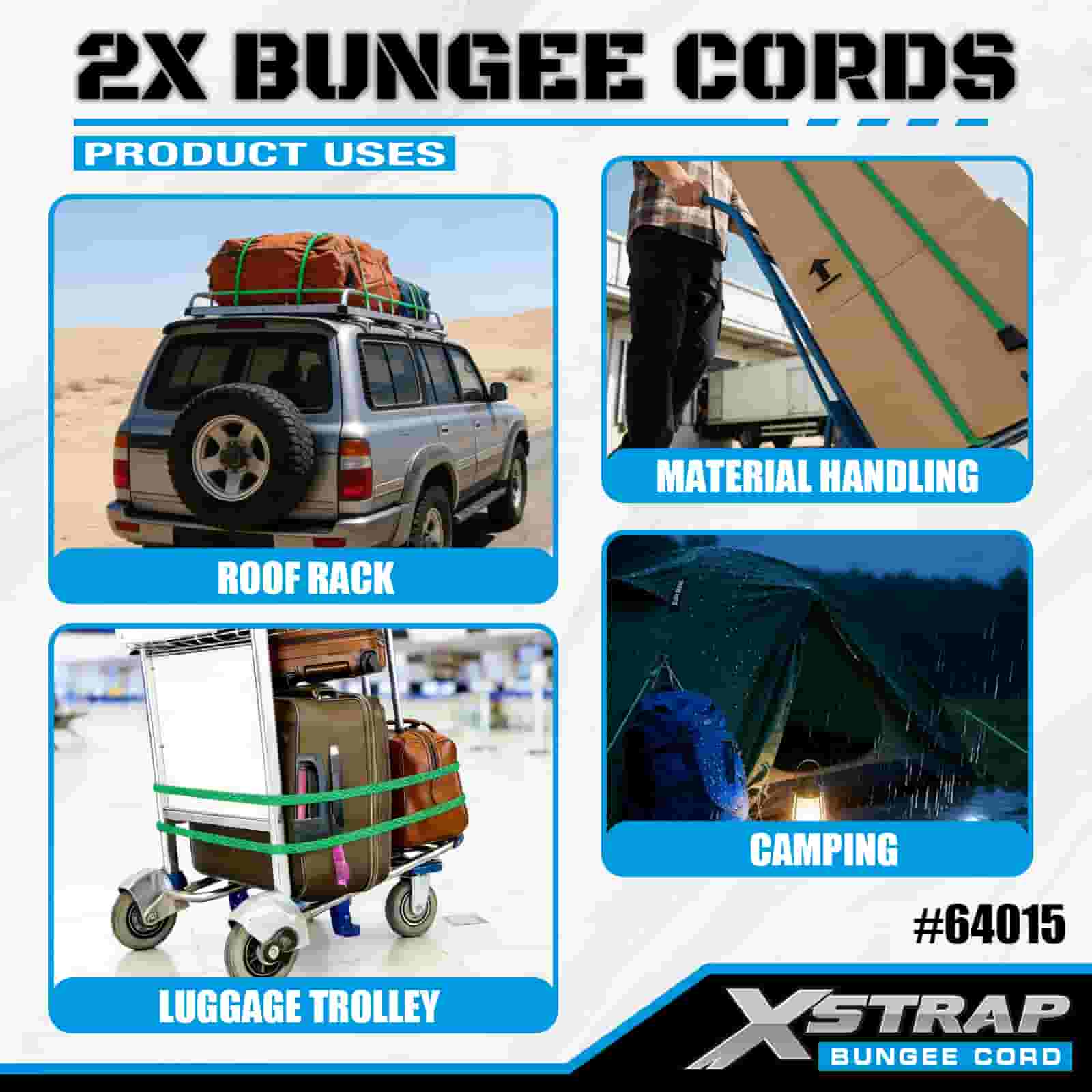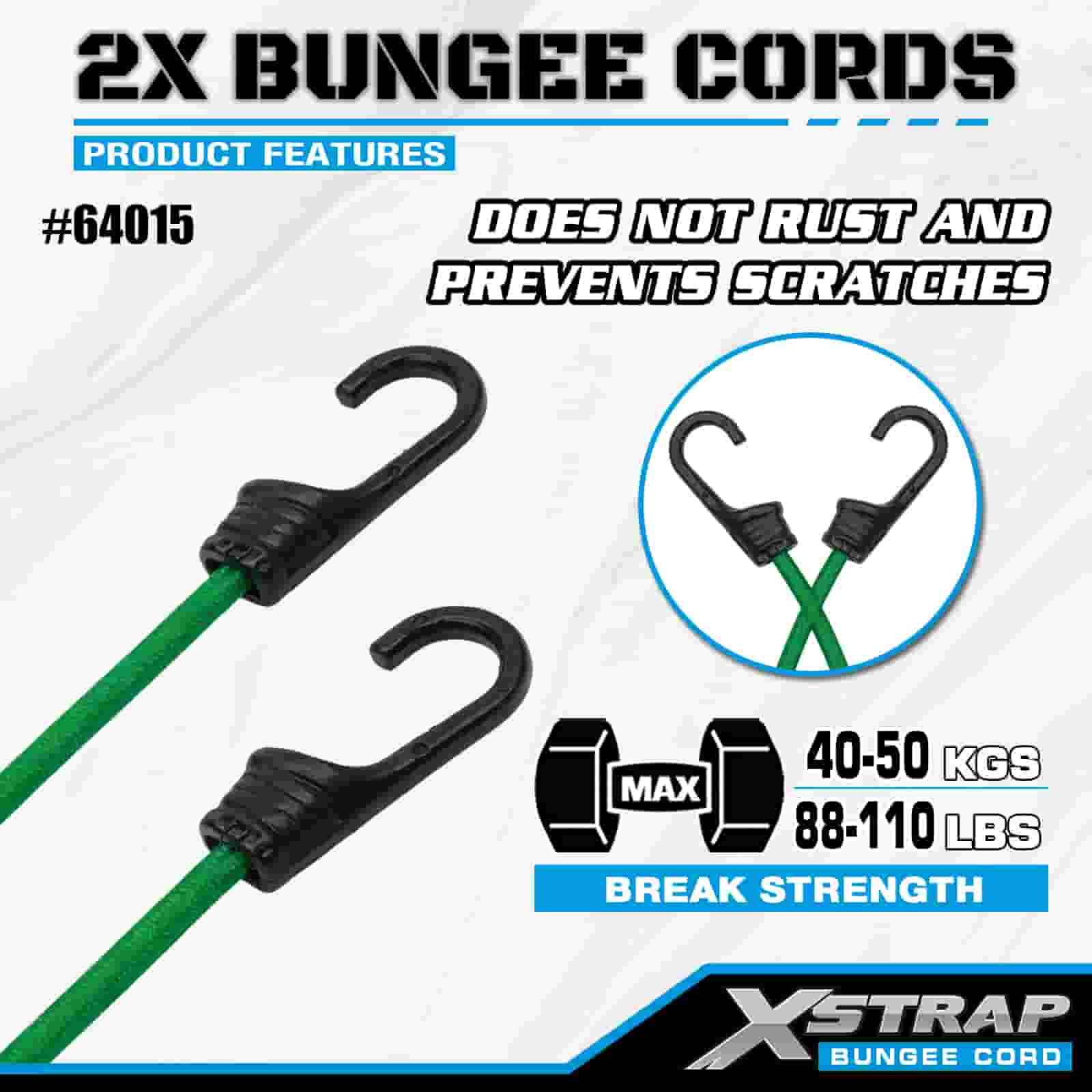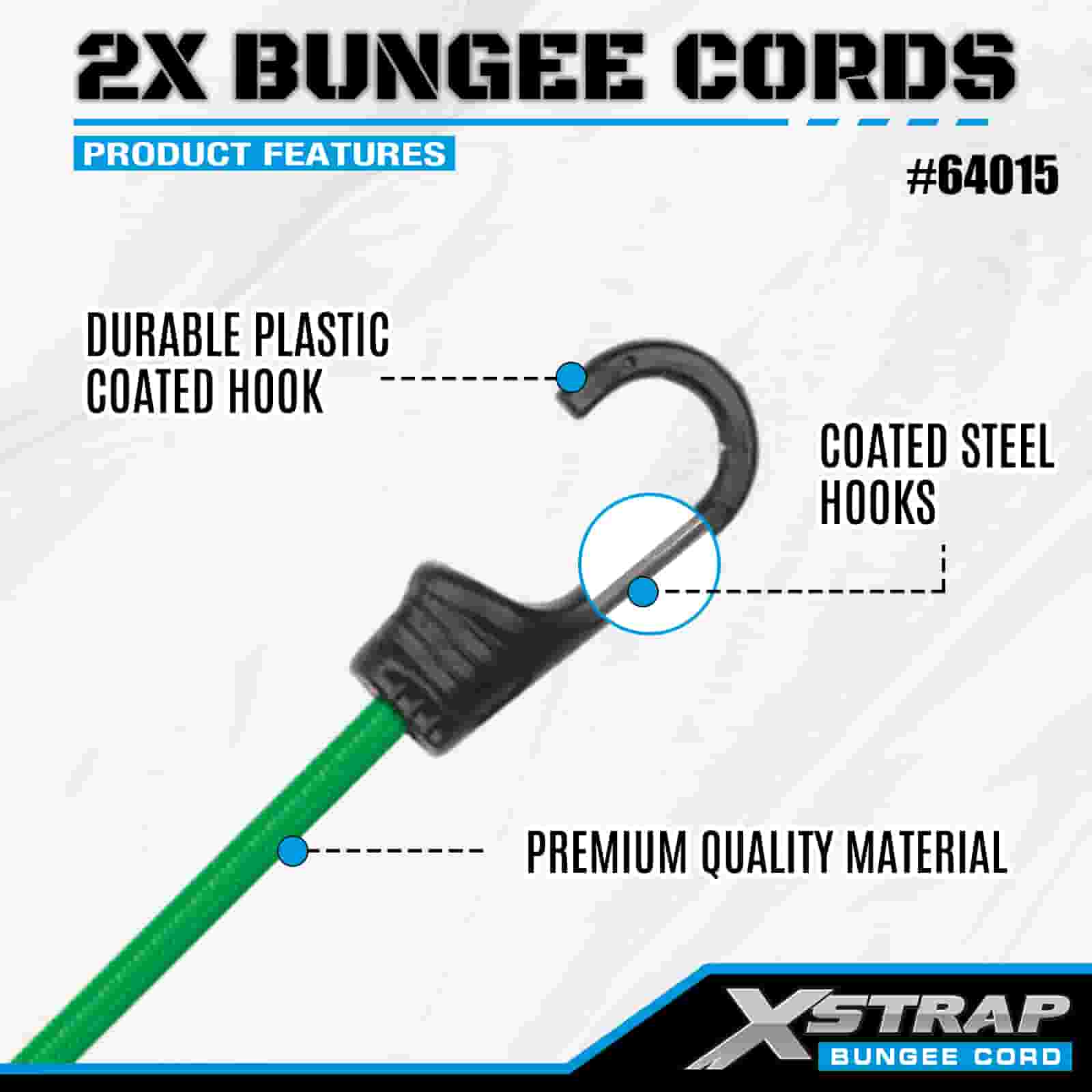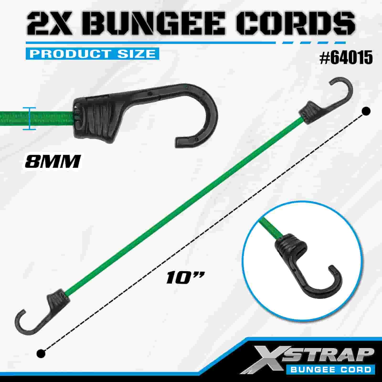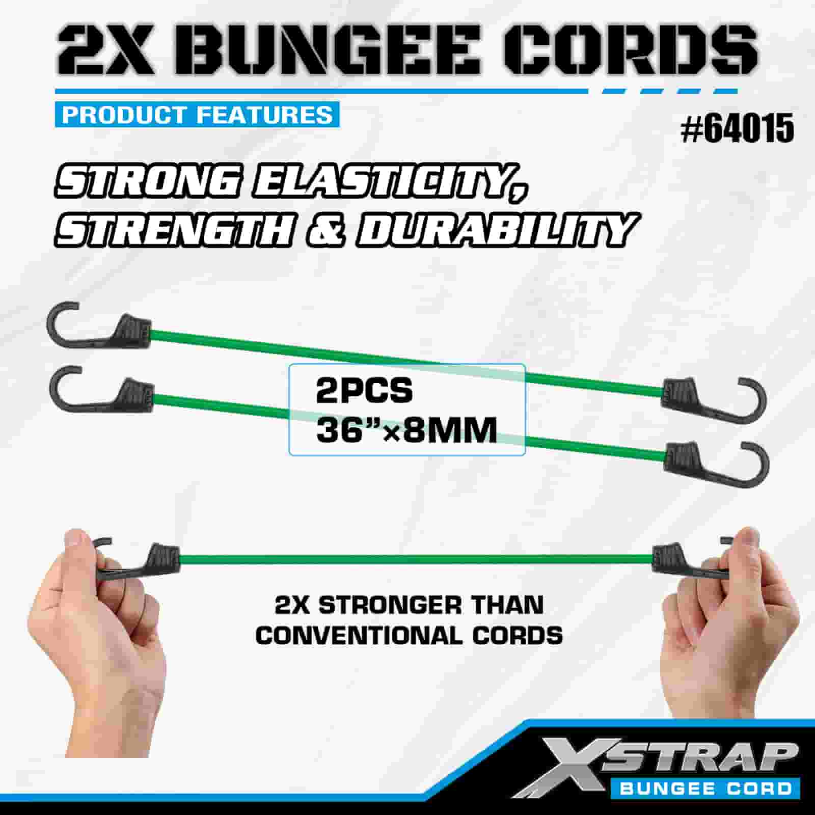 Xstrap 2PK 2X Bungee-johdot 8mm x 36", 88-110 lbs murtolujuus vahvoilla koukuilla lastin hallintaan.