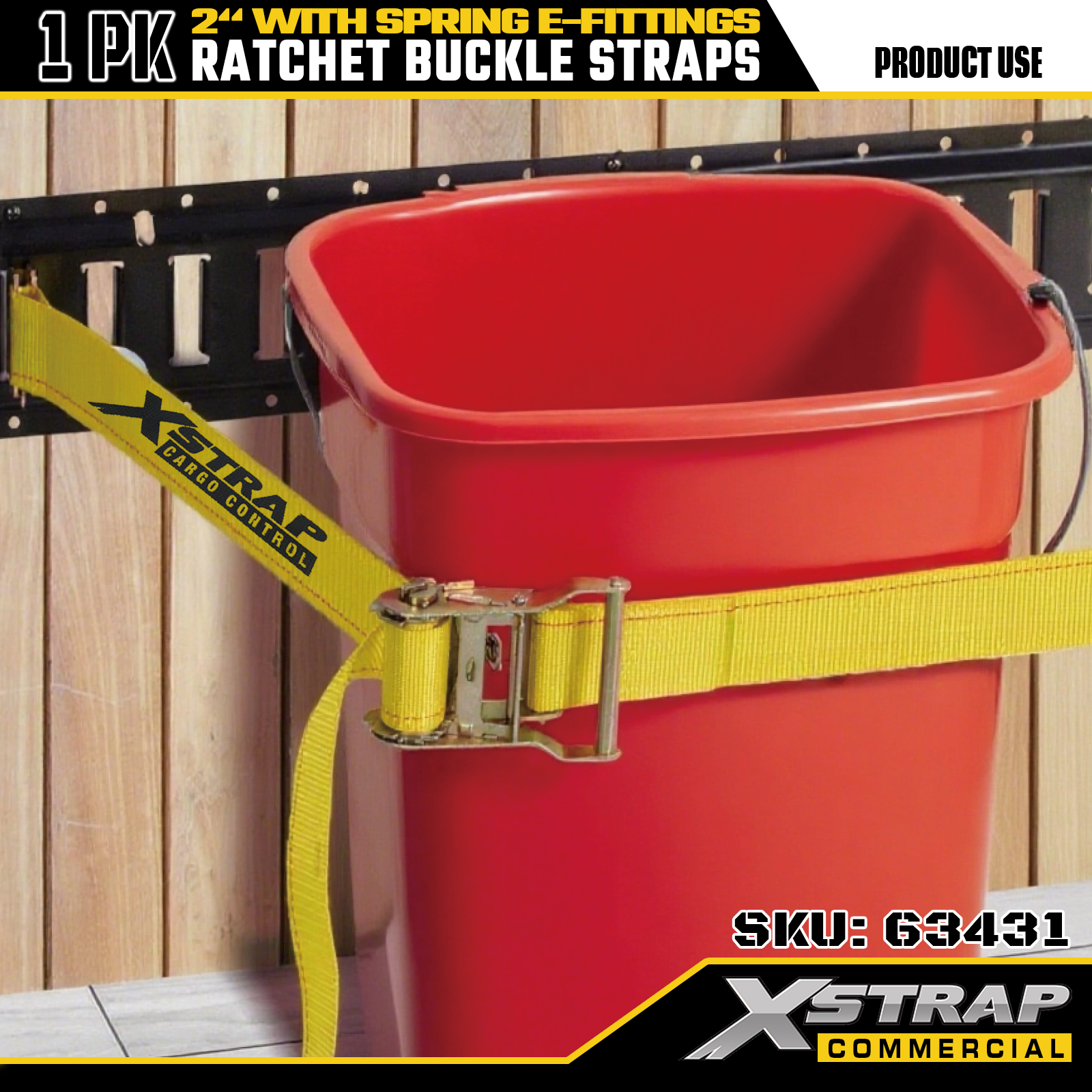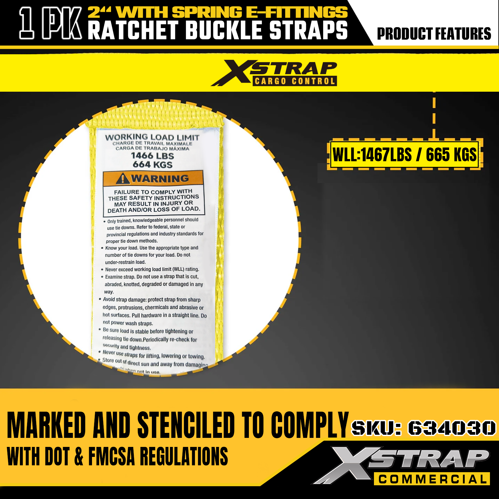Xstrap 1 Pack polyesteriräikkä sidontahihnat jousi E-kiinnikkeillä, 2" x 12" raskaan käytön kuorman kiinnityshihnat, 4401 lbs (1467 lbs) Kapasiteetti kuorma-autoille, ruohonleikkureille, mönkijöille
