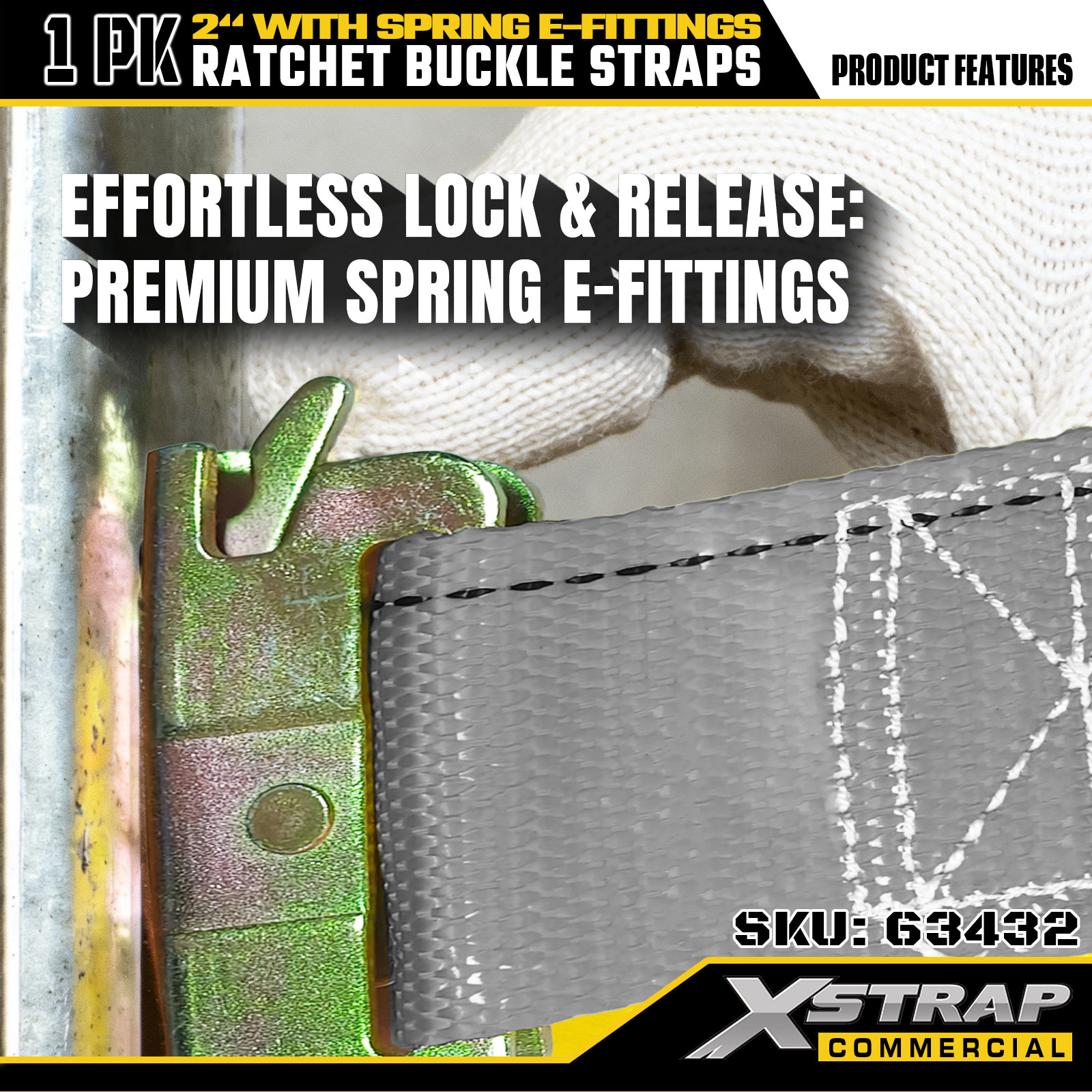 2" x 16" 1PK Räikkäsolkihihnat jousilla E-liittimillä