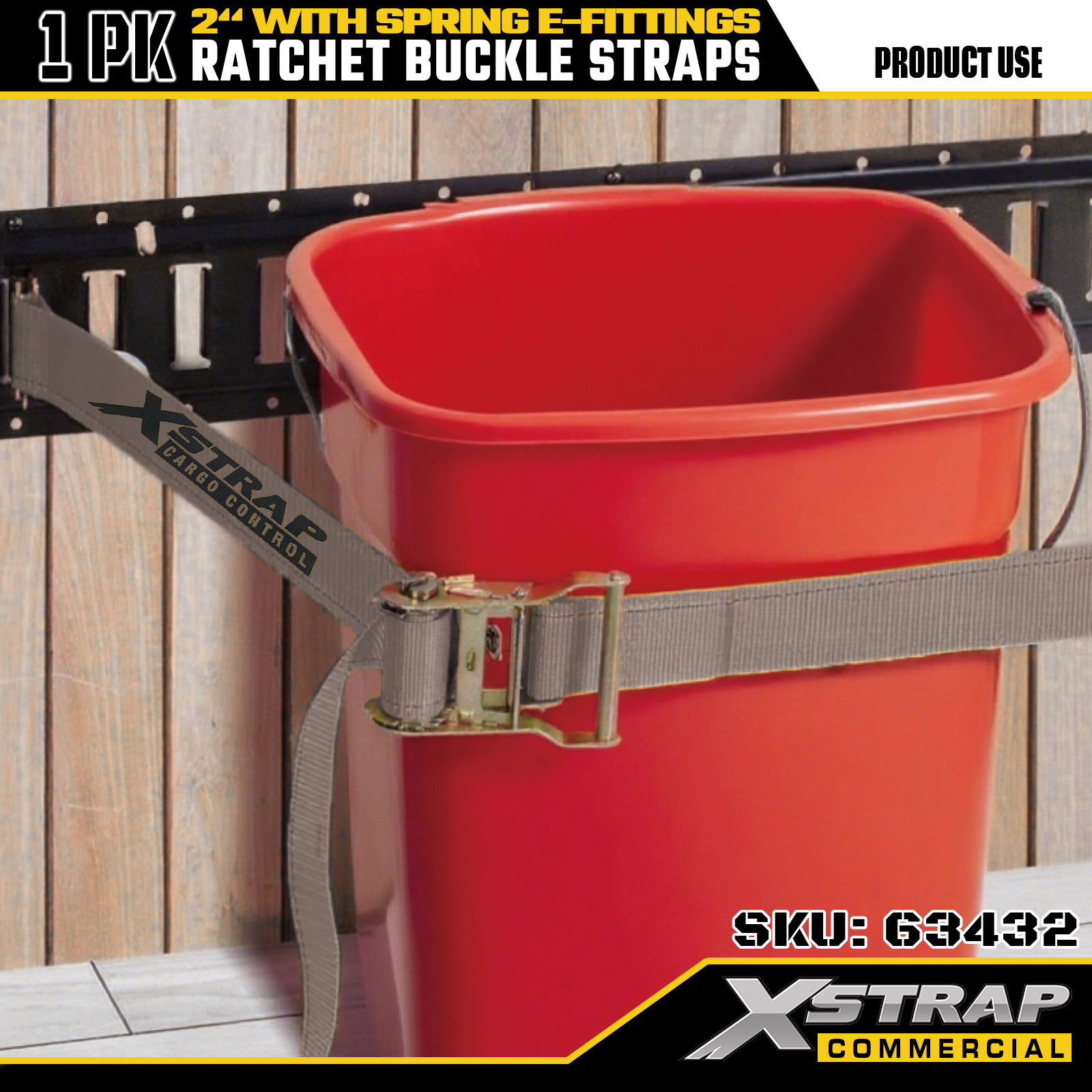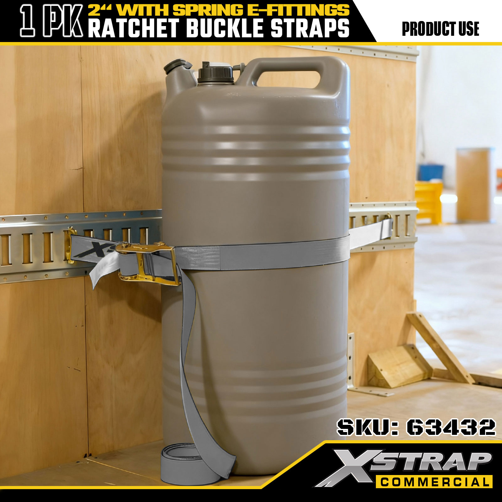 Xstrap 1-pack räikkä kiinnityshihnat, 2" x 16" polyesteri lastin kiinnityshihnat, 1467 paunaa turvallinen työkuorma ja 4401 paunaa murtolujuus, jousi E-liittimet kuorma-autoille, ruohonleikkureille ja mönkijöille