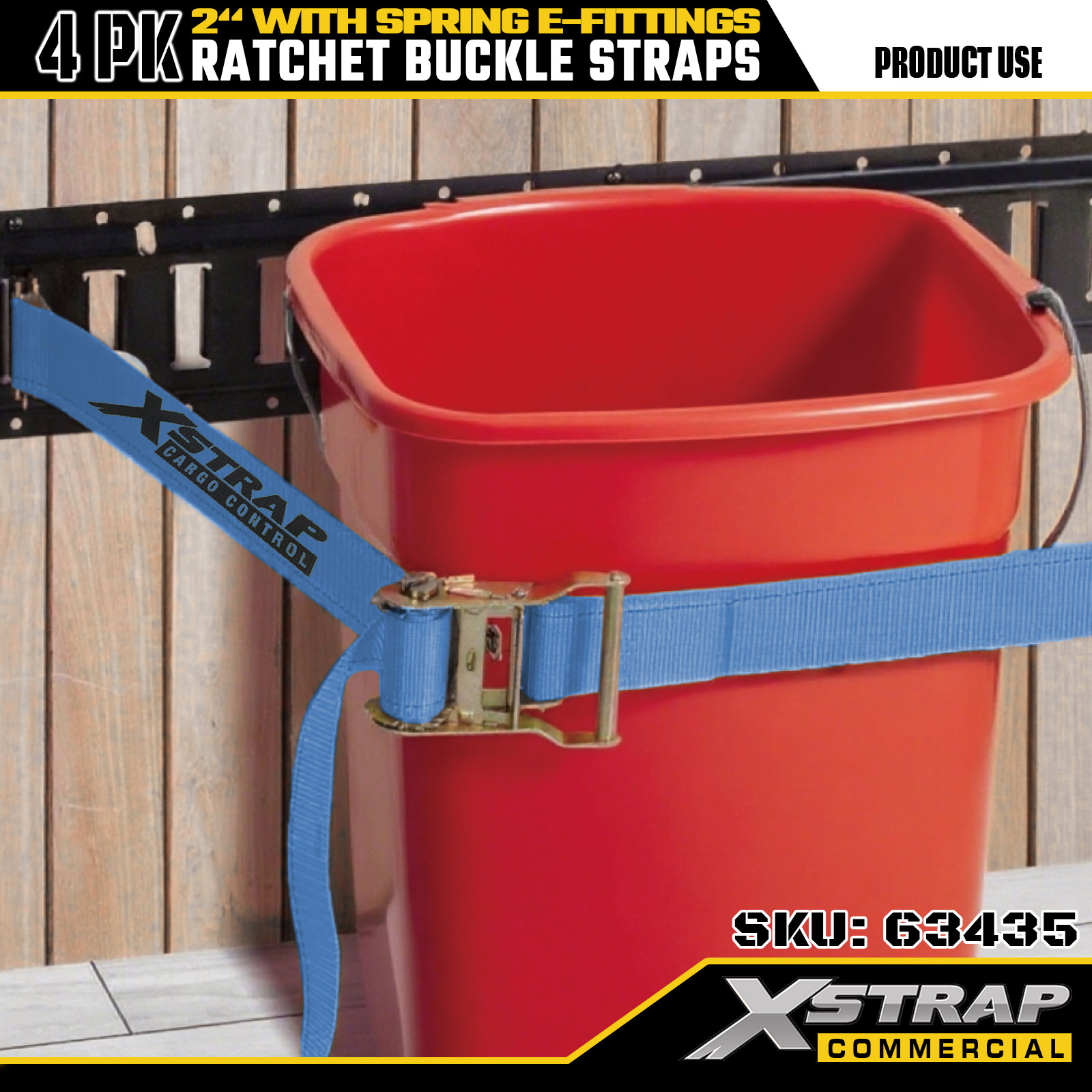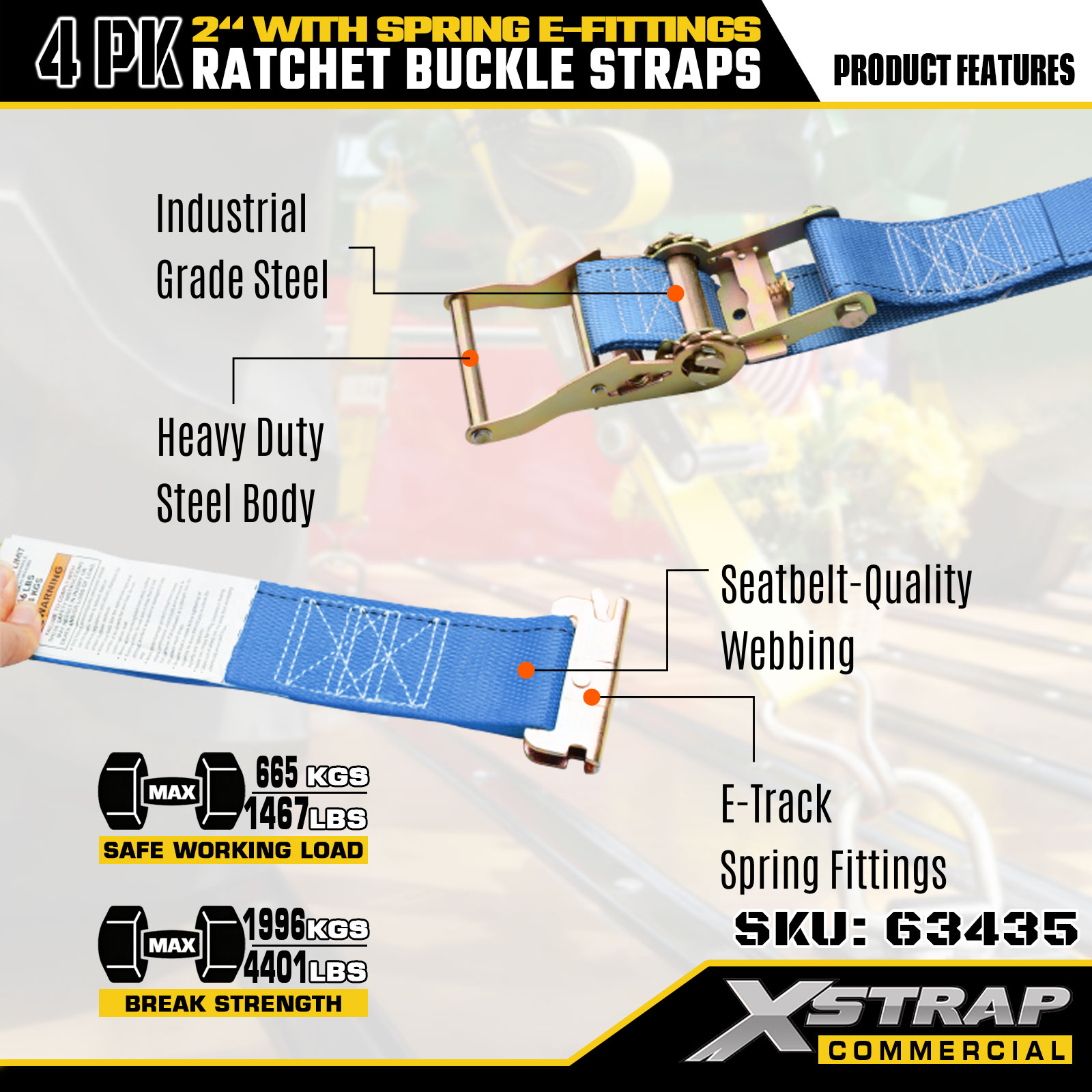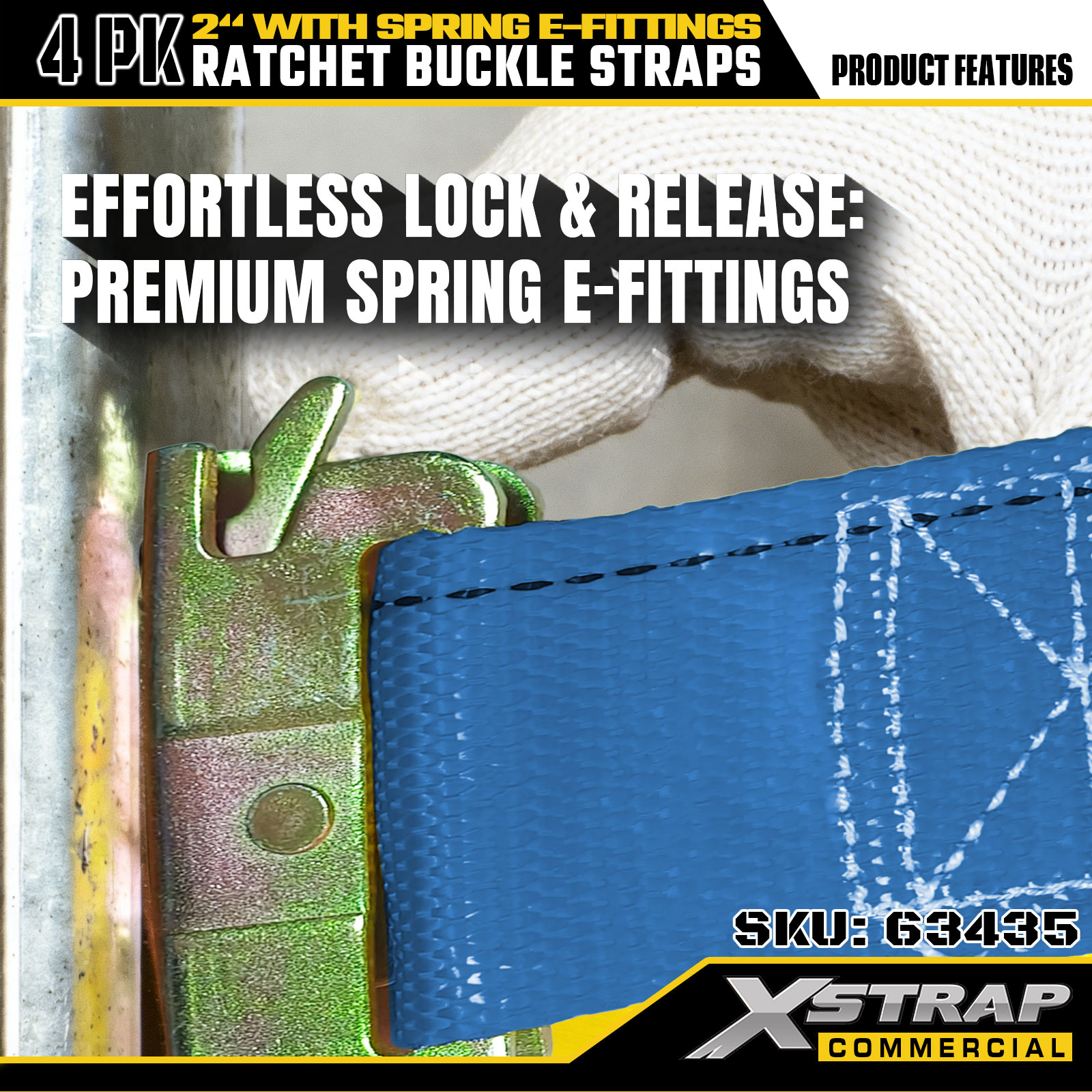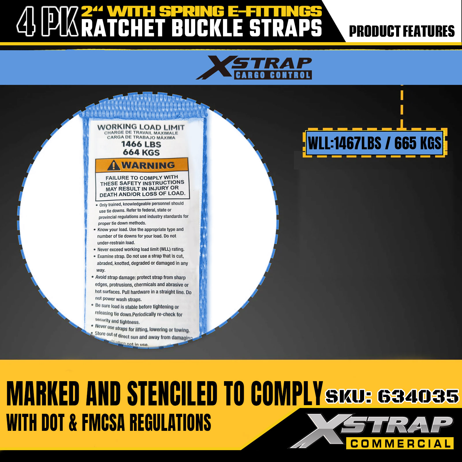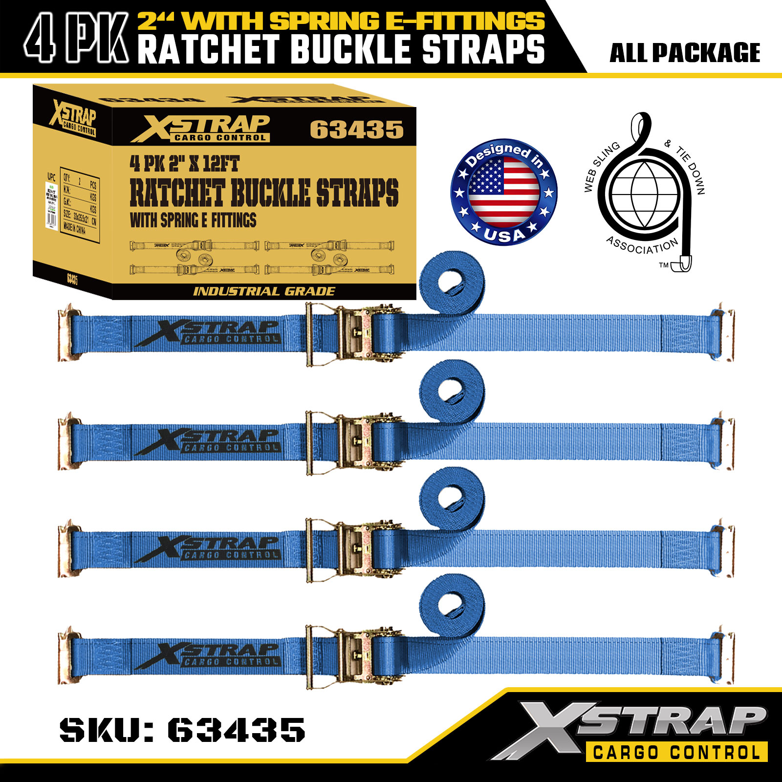 Xstrap 4 Pack Räikkäkiinnityshihnat, 2" x 12" polyesterilastin kiinnityshihnat jousilla E-liittimillä, 1467 paunaa turvallinen työkuorma (SWL) ja 4401 paunaa murtolujuus, kuorma-autoihin, ruohonleikkureihin, mönkijöihin