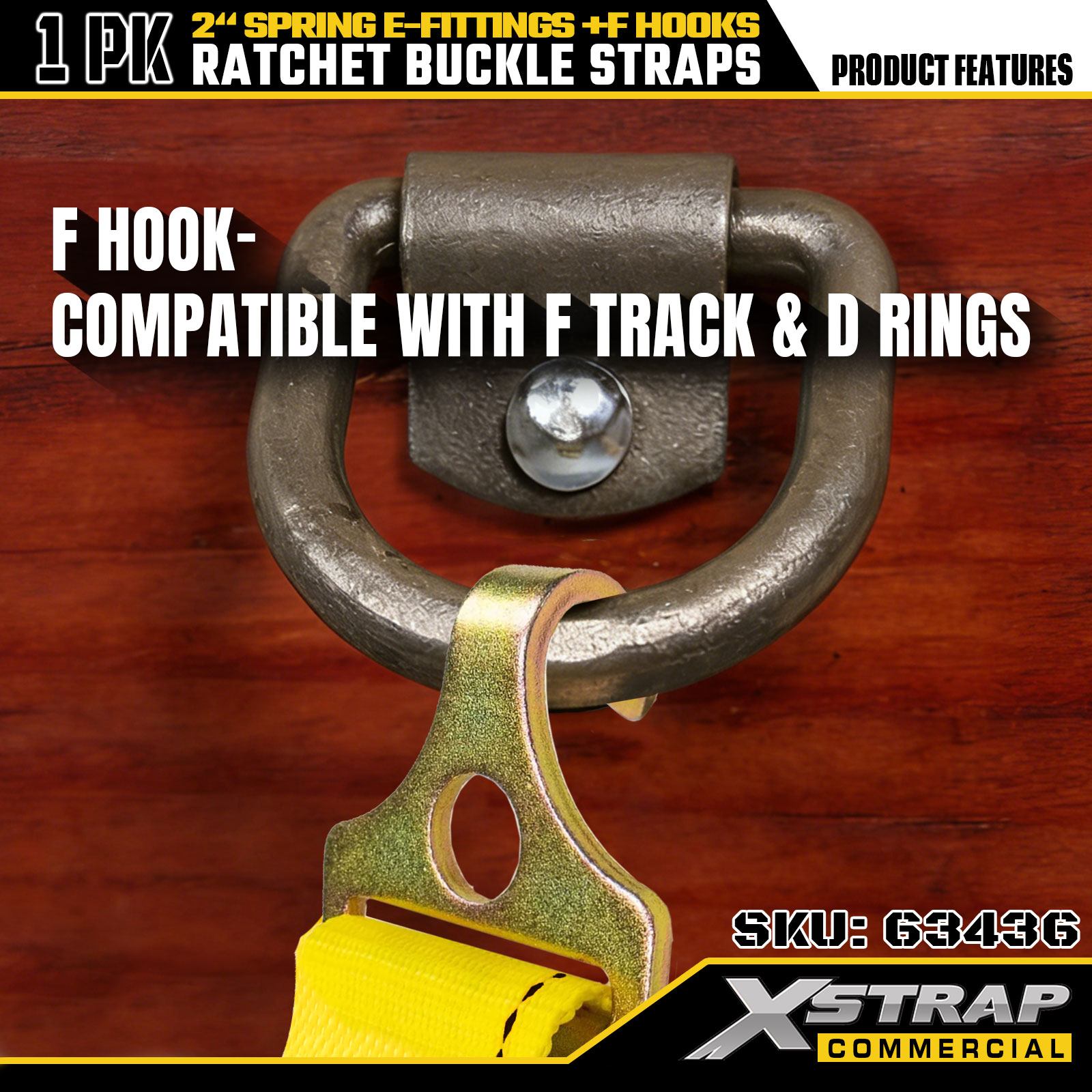 - TURVALLINEN JA LUOTETTU – Jokaisessa 2" x 12" räikkähihnassa (1PK) on 733 lbs SWL ja 332 lbs murtolujuus, jousi E-liittimet ja F-koukut lujaa lastin lukitsemista varten. Ihanteellinen laatikoille, kodinkoneille ja muuttotarvikkeille, yhteensopiva perävaunujen, kuorma-autojen ja varastojen E-Track-järjestelmien kanssa.