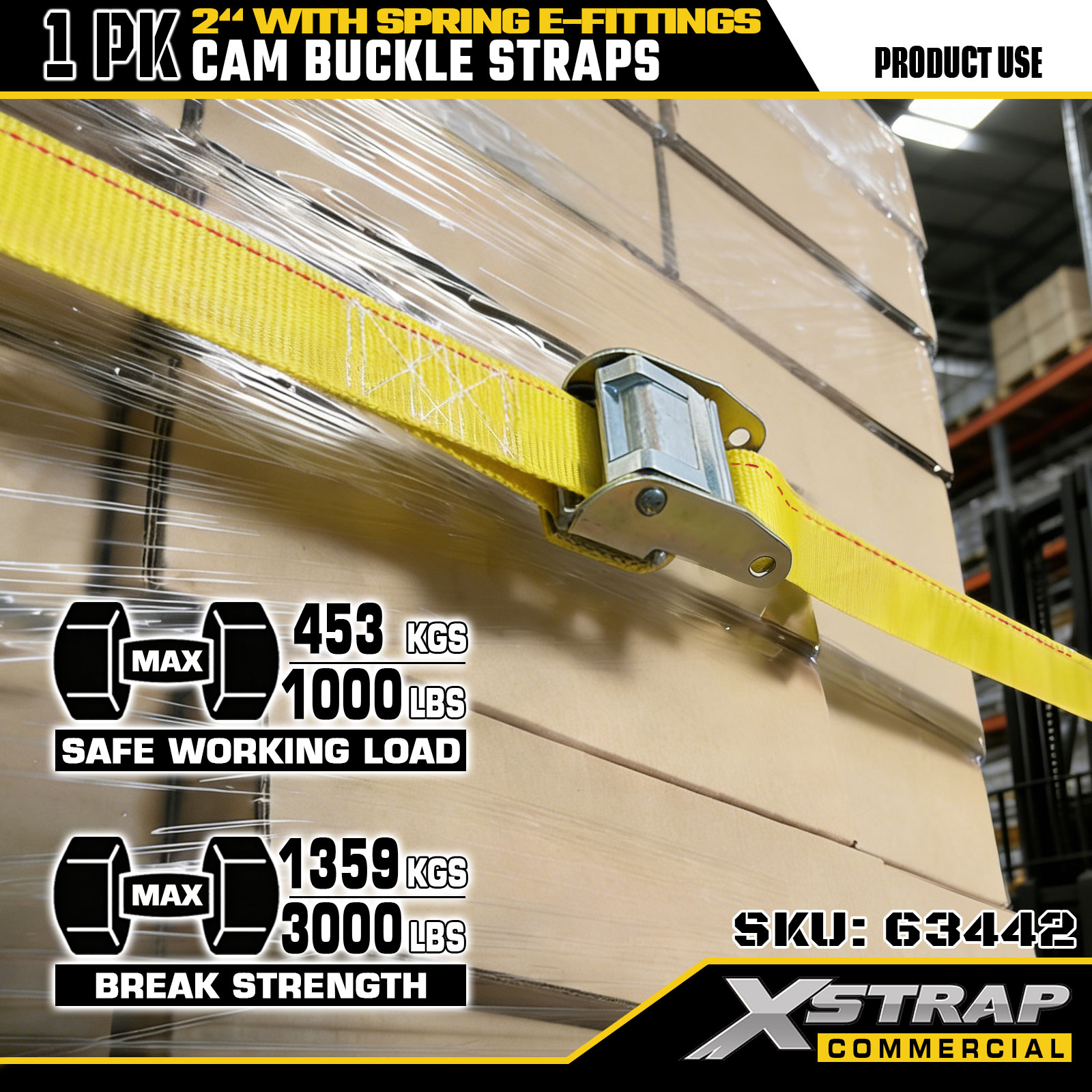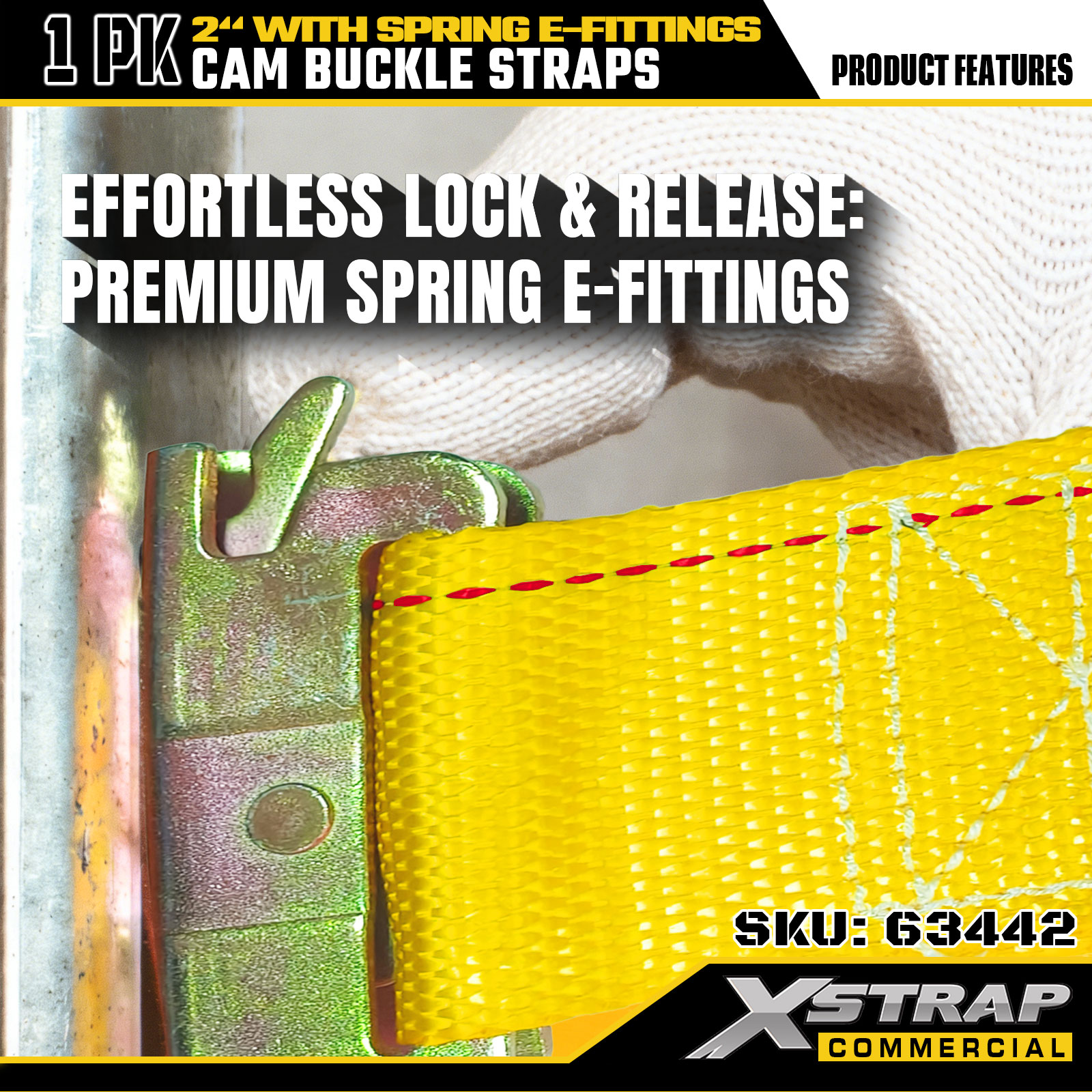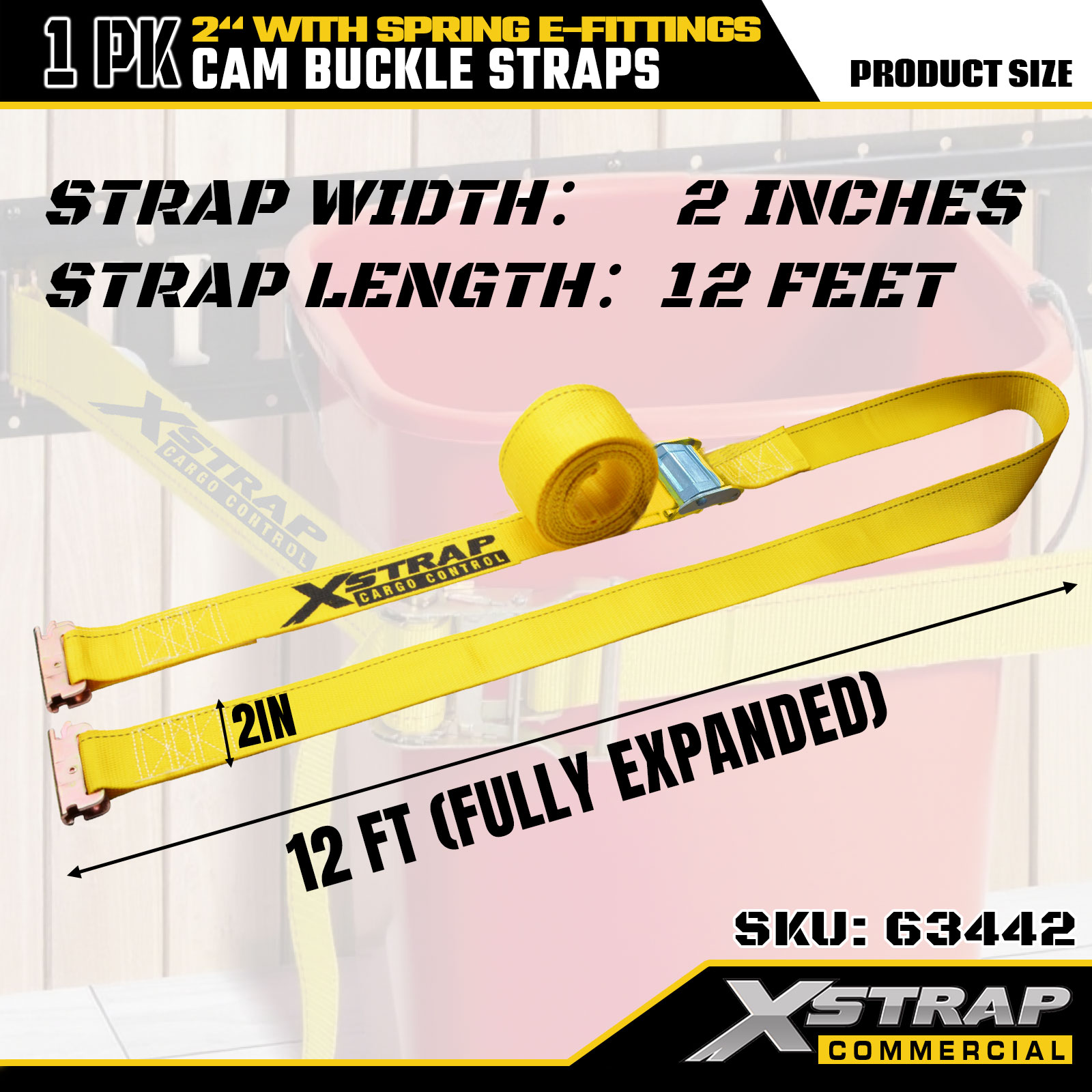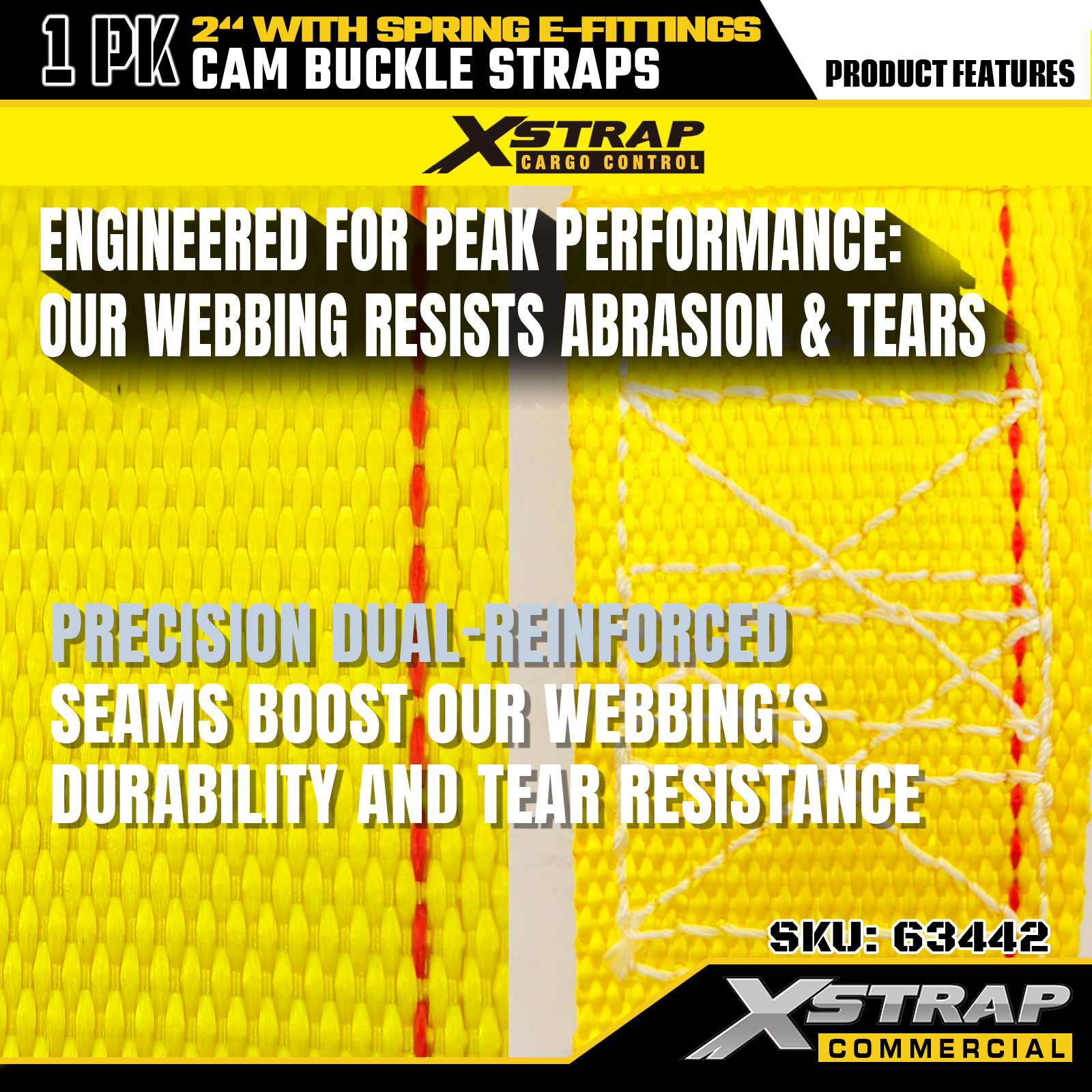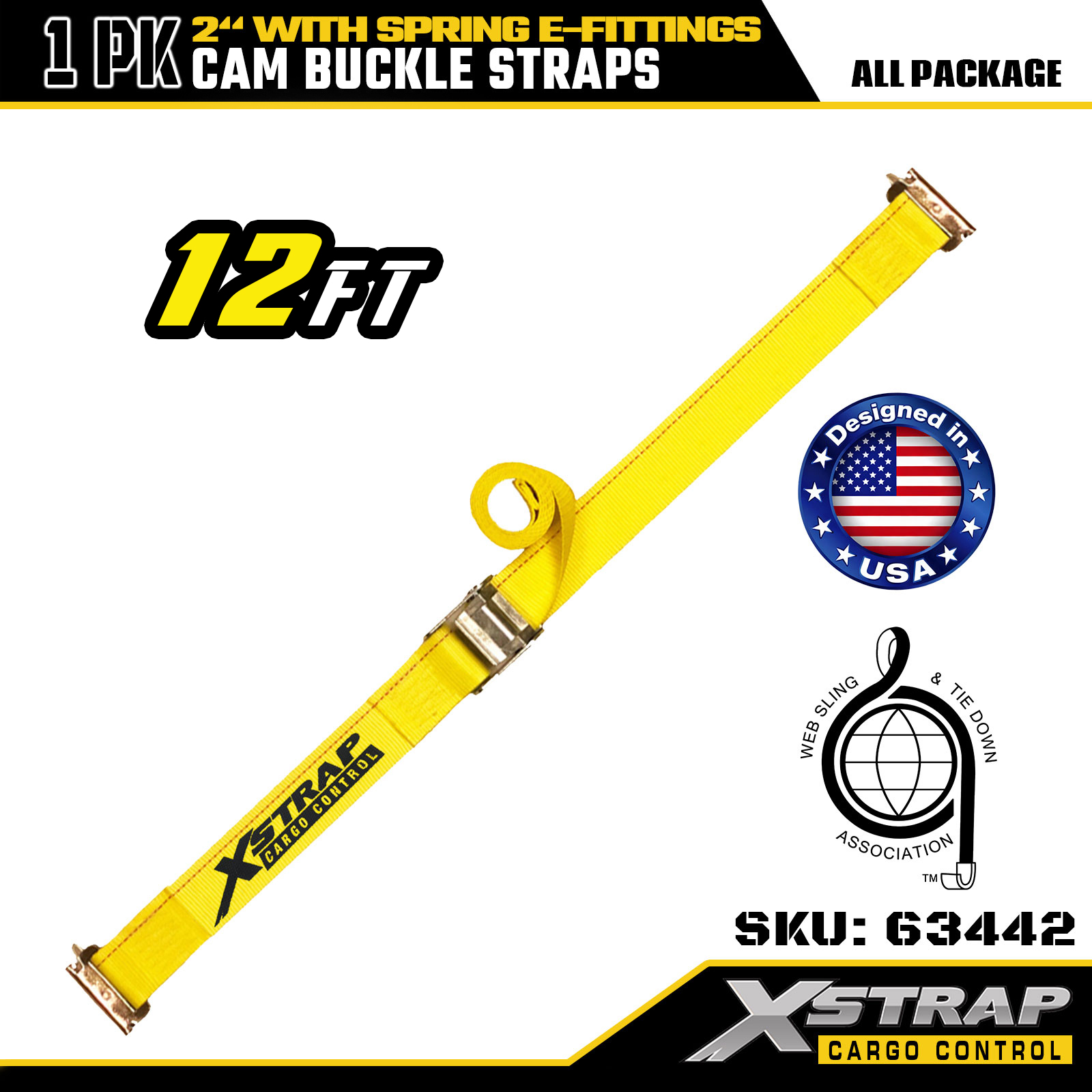 Xstrap 63442 Heavy Duty -kameran solkihihna 2" x 12" (1PK) - keltainen polyesteri jousilla E-liittimillä, 1000 lbs SWL & 453 lbs murtolujuus liikkumiseen, lastin hallintaan ja kuljetukseen