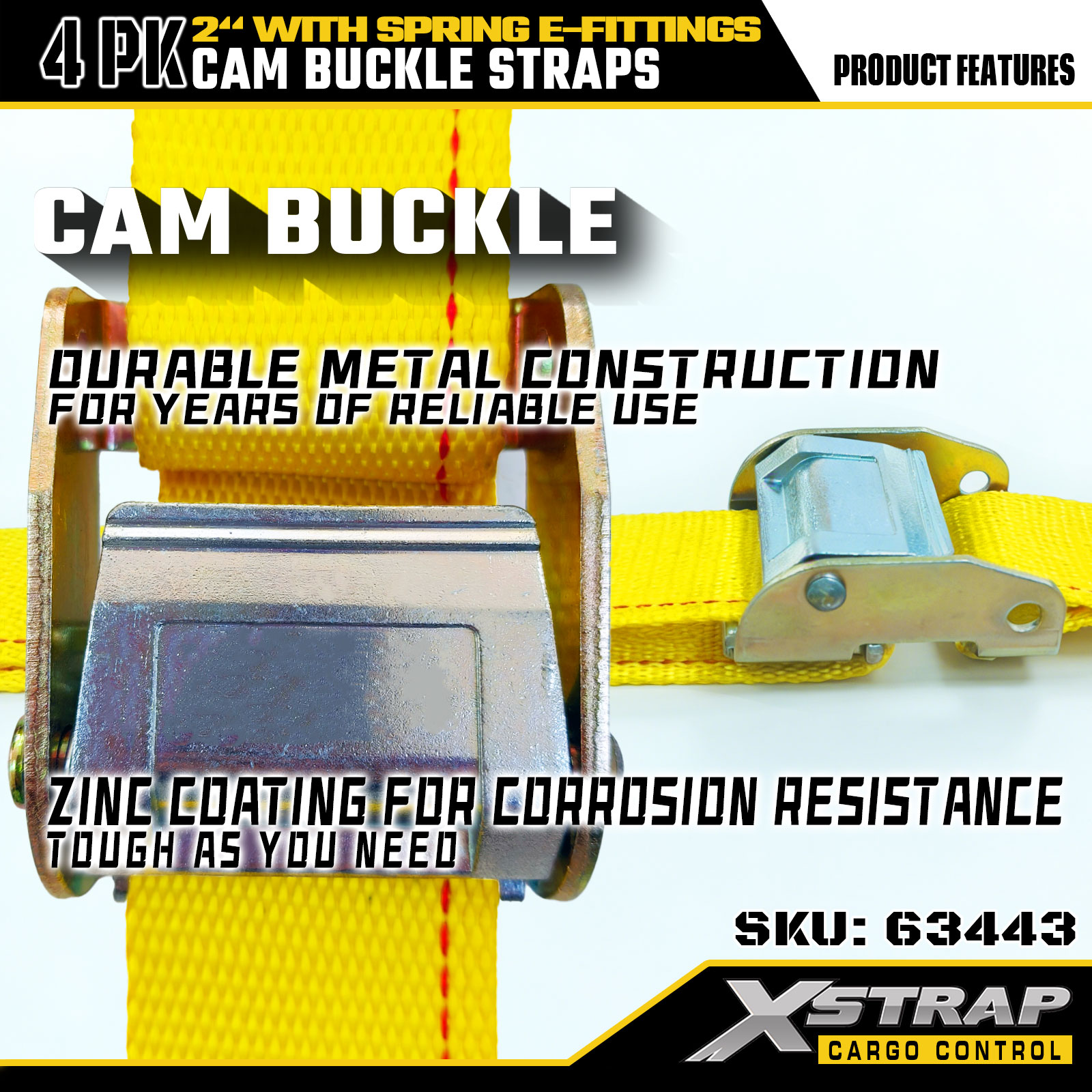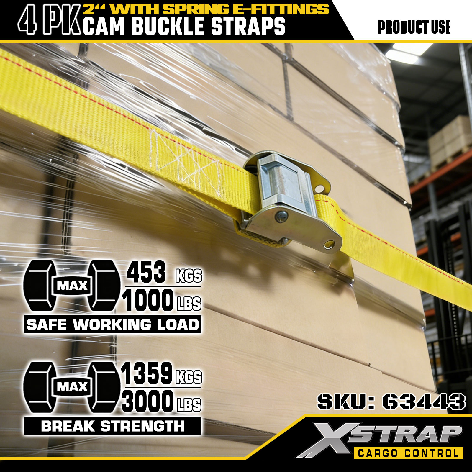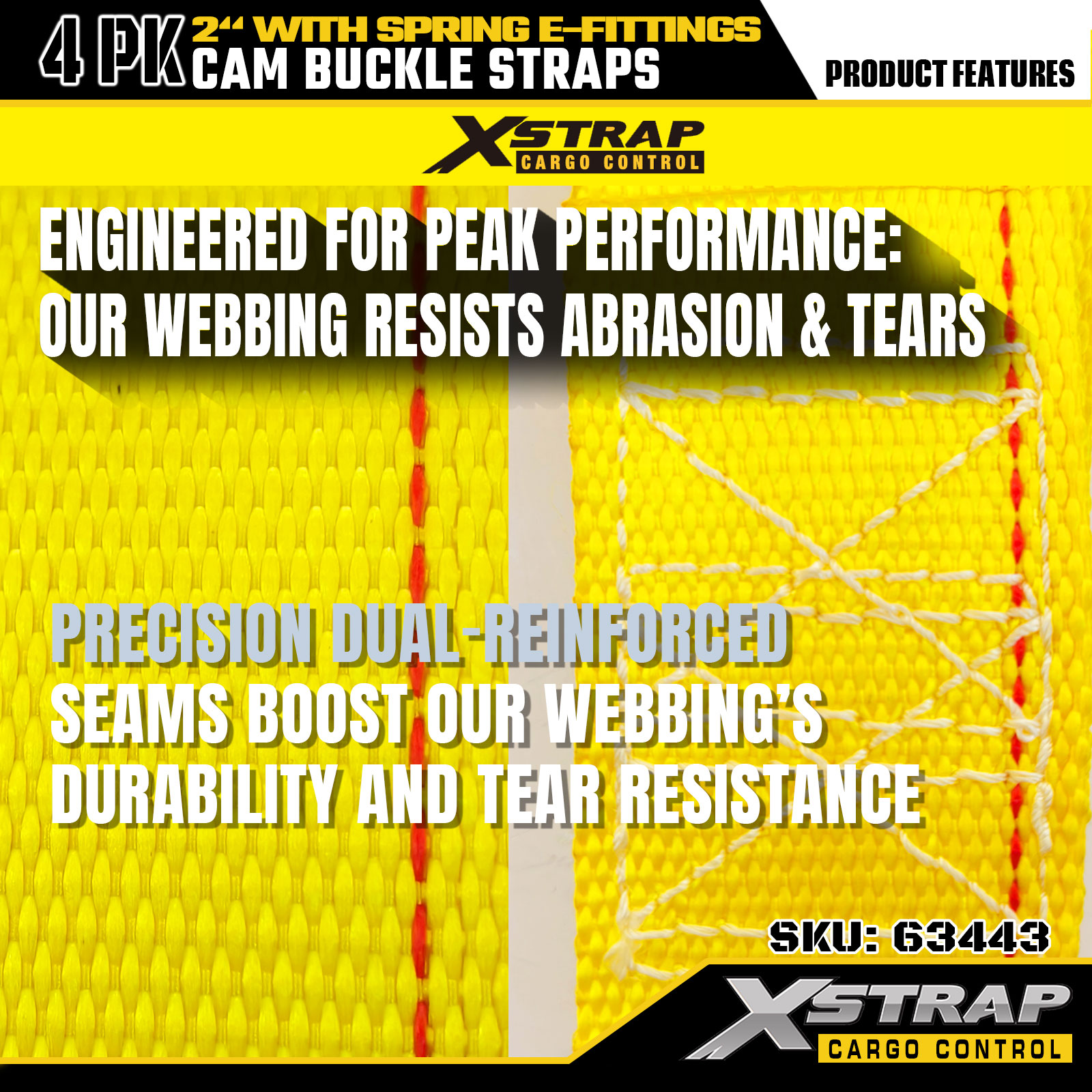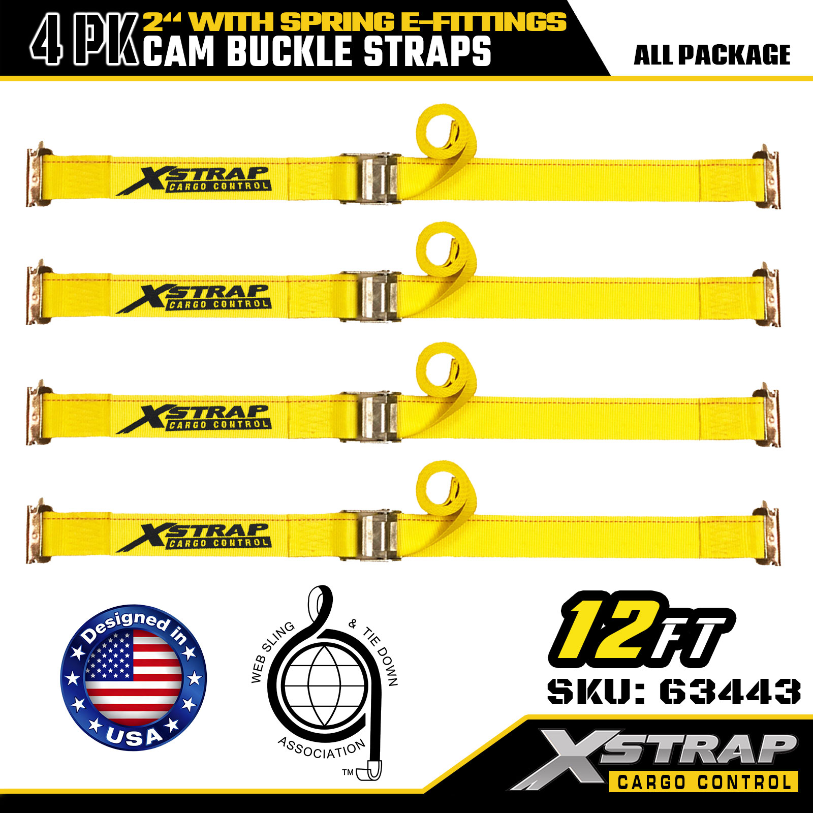 Xstrap 63443 4 pakkaus 2" x 12" keltaiset nokkahihnat jousilla E-liittimillä, 1000 lbs SWL & 453 lbs murtolujuus lastin käsittelyyn, siirtoon ja kuljetukseen