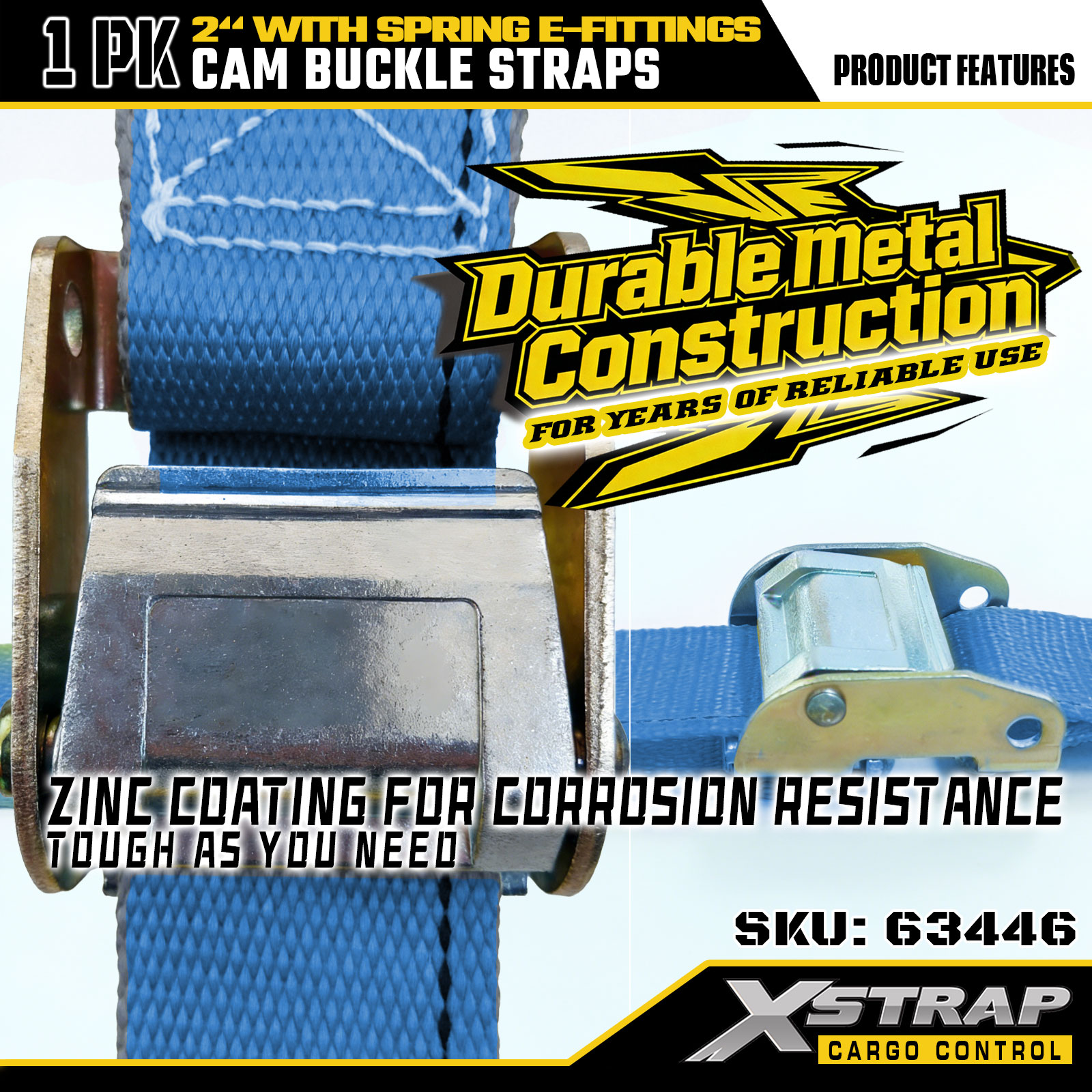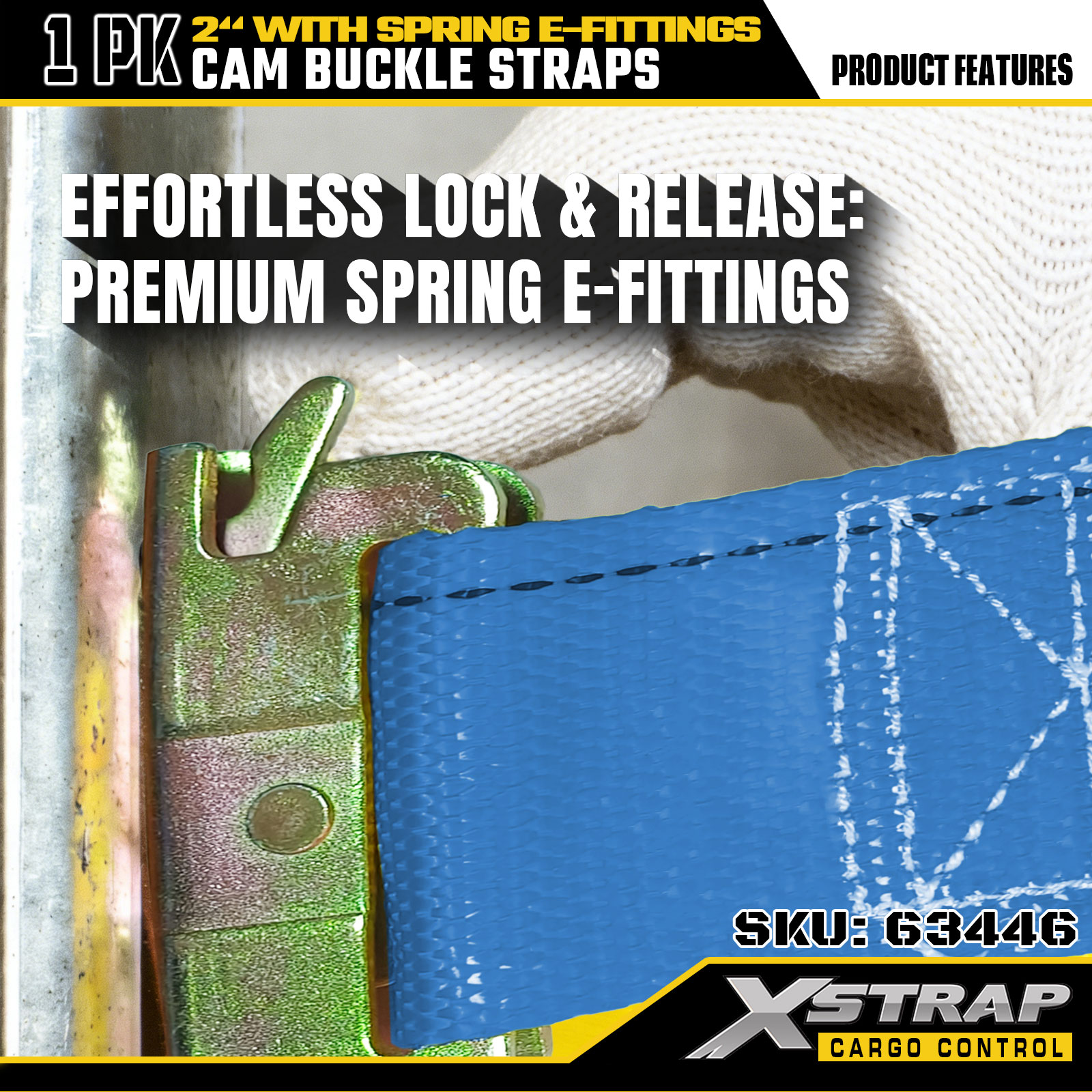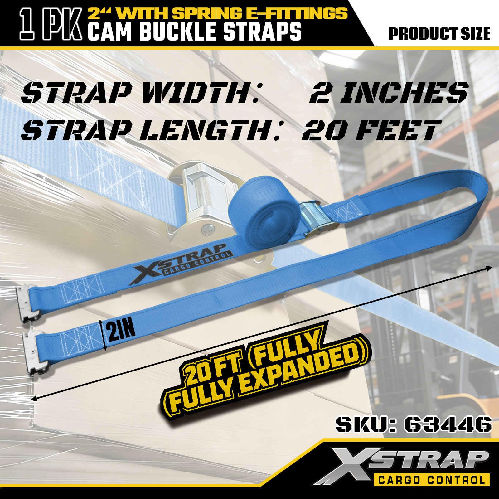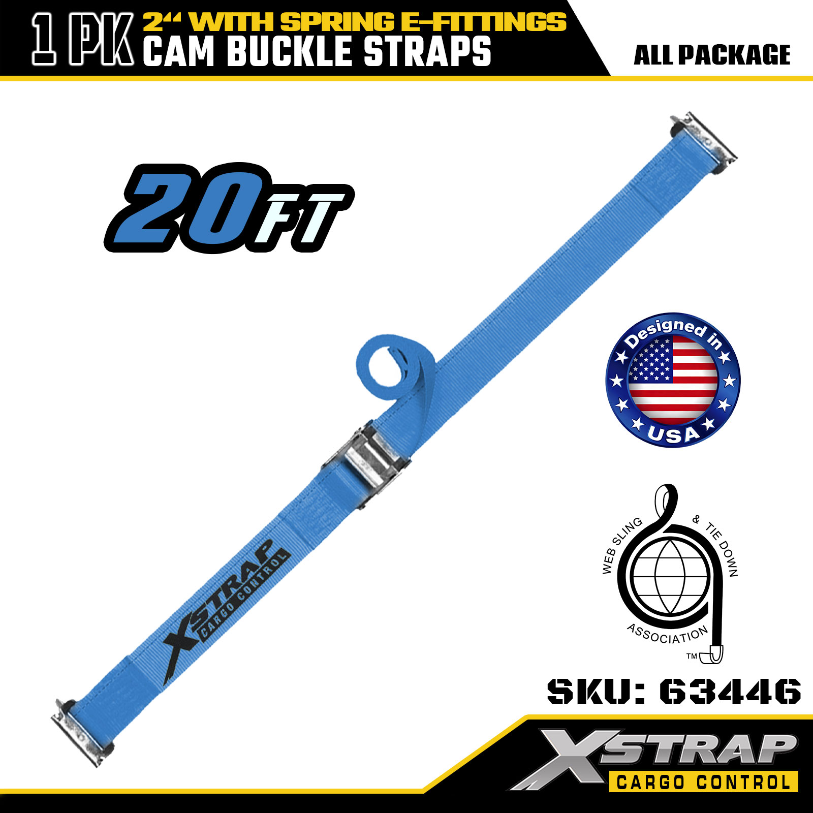 Xstrap 63446 Heavy Duty -räikkähihna, 2" x 20" (1PK) - Sininen polyesteri jousilla E-liittimillä ja F-koukkuilla, 733 lbs SWL & 332 lbs murtolujuus lastin hallintaan, siirtämiseen ja kuljetukseen