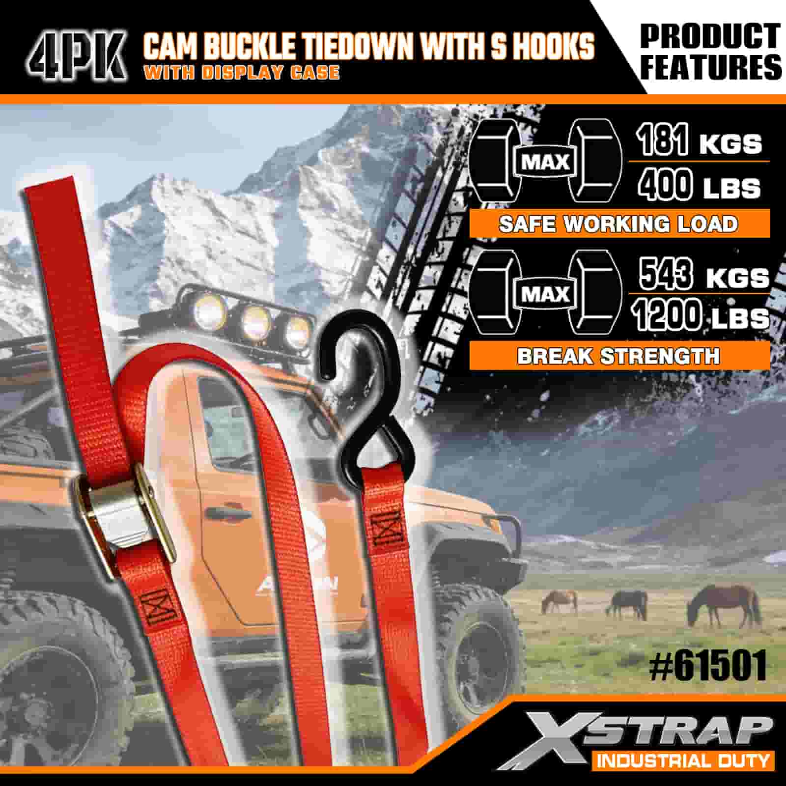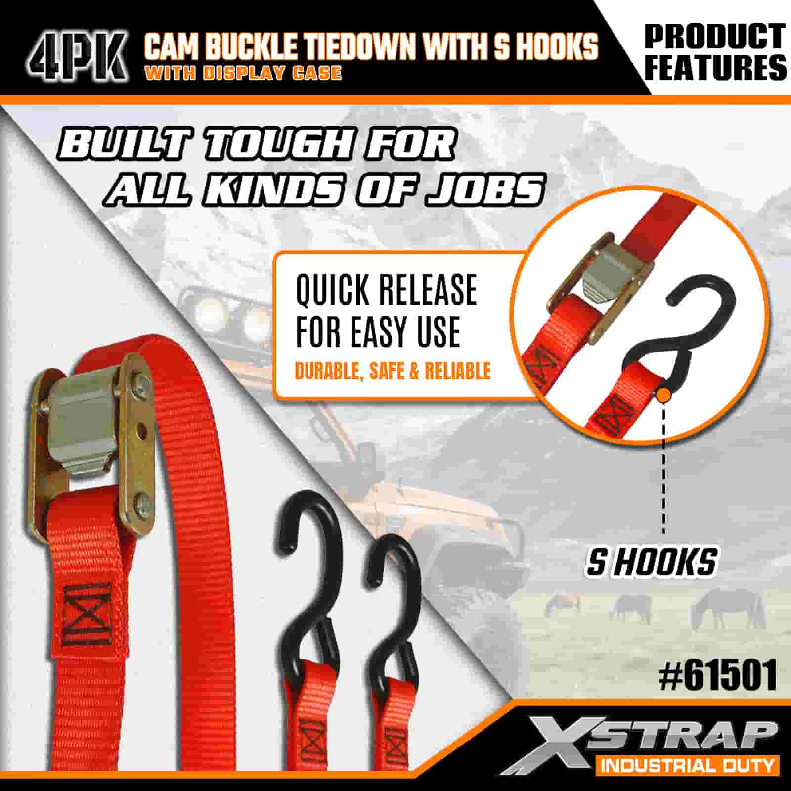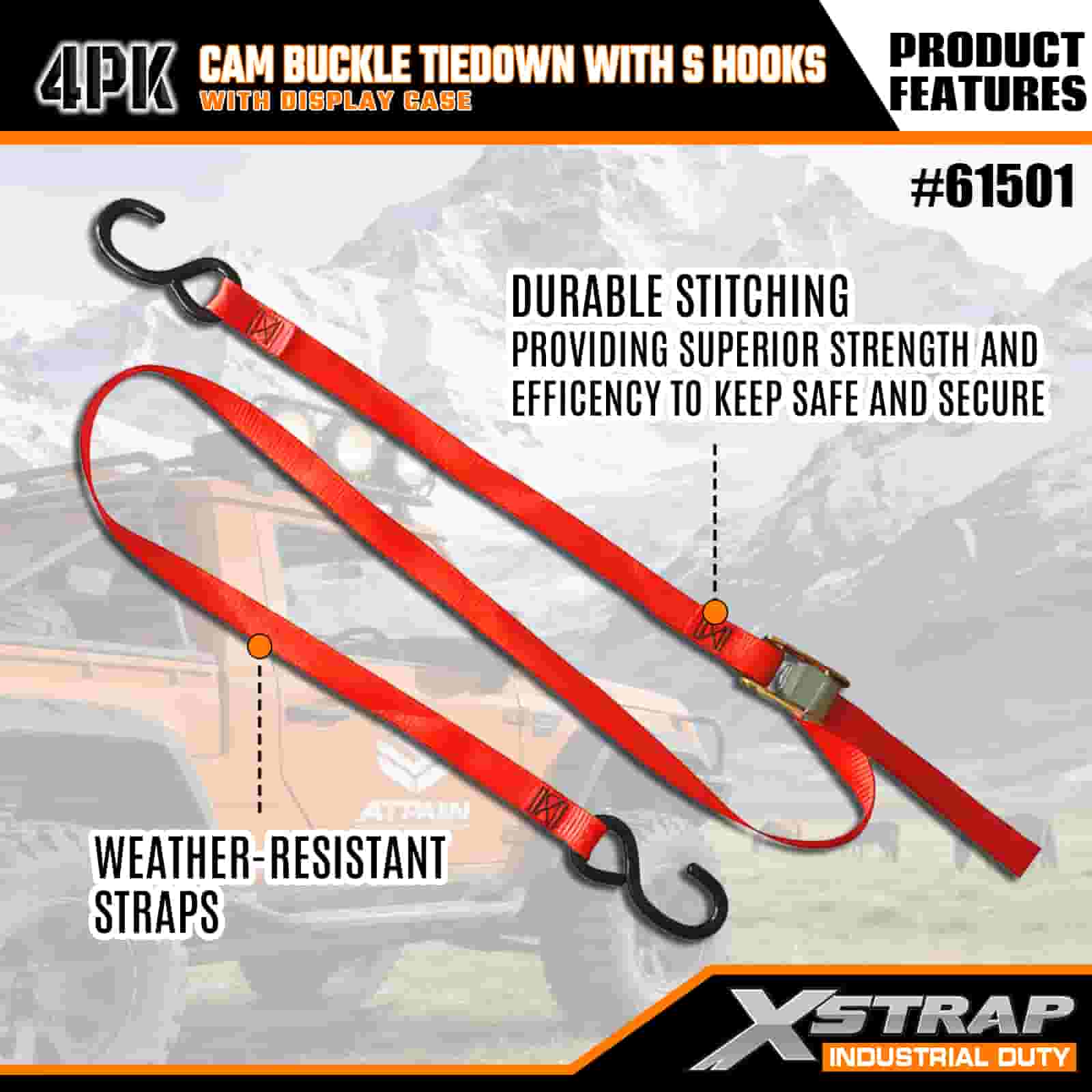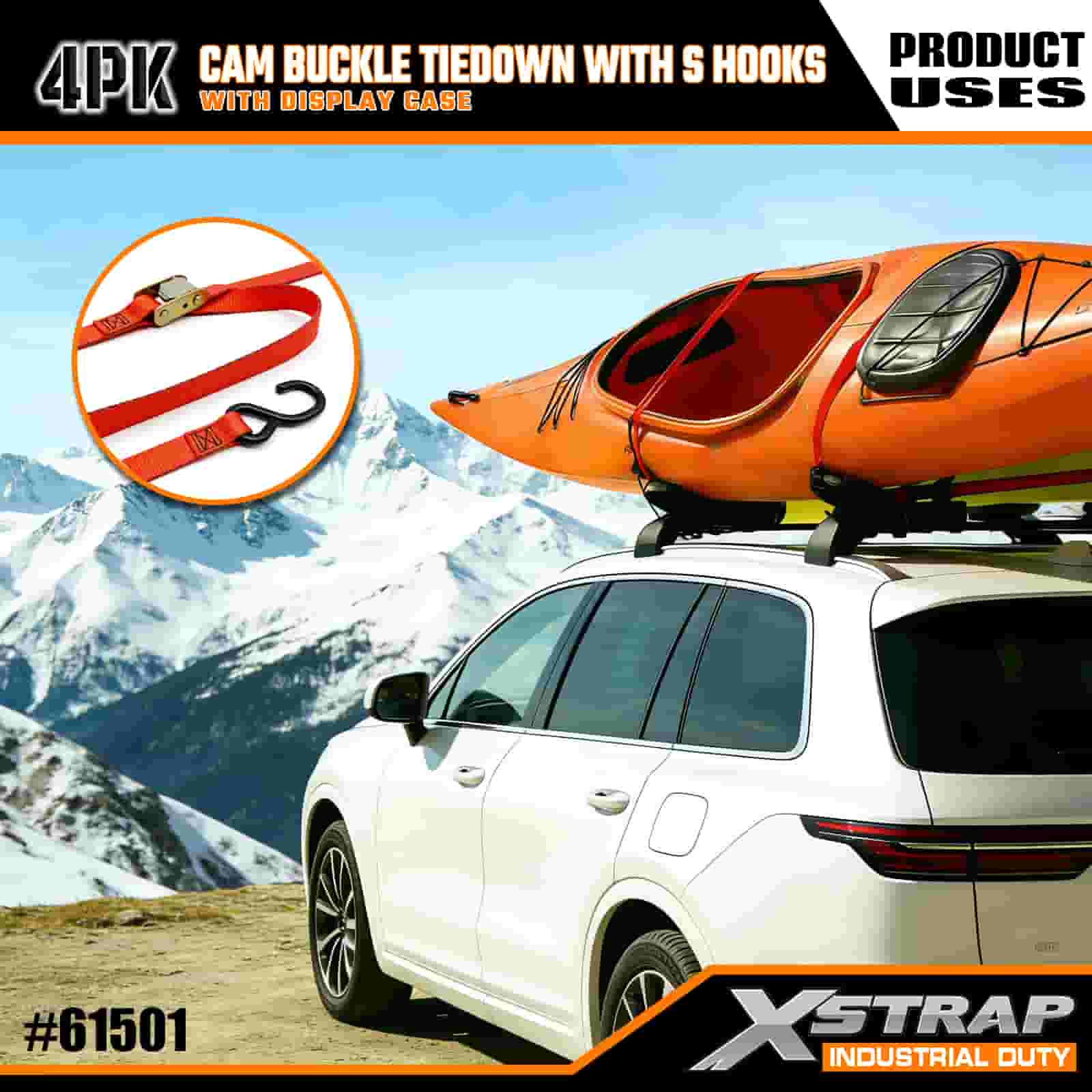 - Käytännöllinen 4-pakkaus näyttökotelolla: myydään 4 kappaleen sarjana (näyttöpakkauksen kanssa) eräkäyttöön, ja kunkin hihnan leveys on 2 tuumaa × 6 jalkaa pitkä, mikä sopii ihanteellisesti kajakkien, ulkoiluvarusteiden tai rahdin kiinnittämiseen.