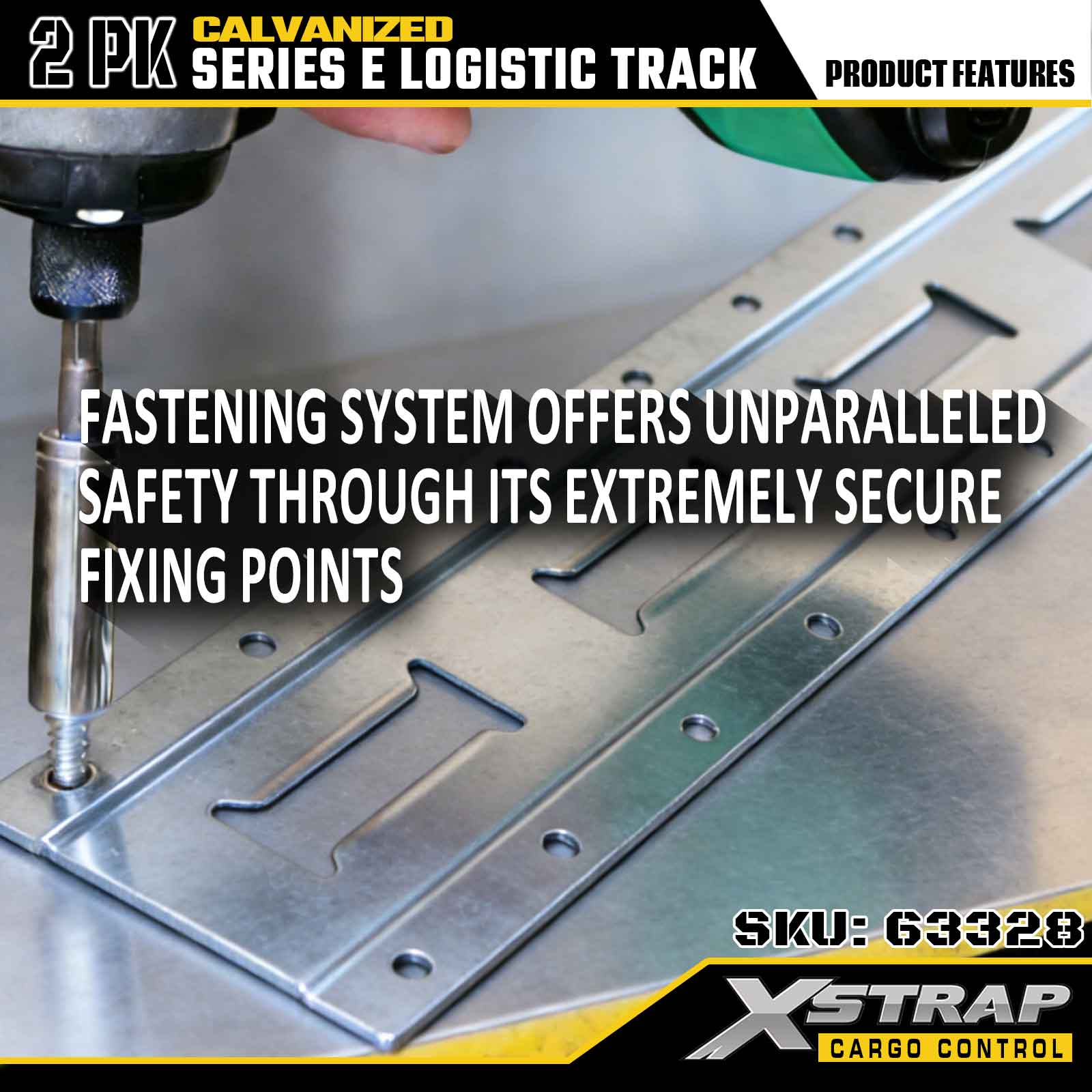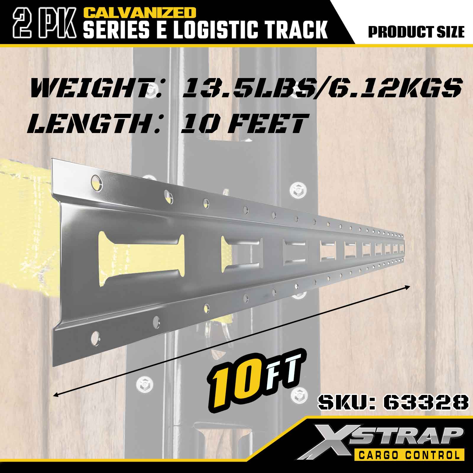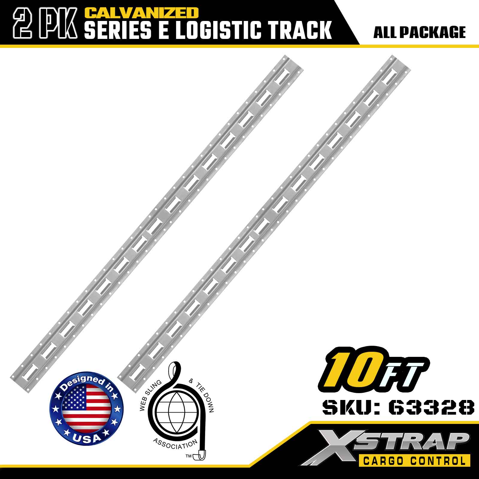 Xstrap 63328 10 jalkaa galvanoitu hopea E-Track kiinnityskisko - 12-rajainen teräs galvanoidulla viimeistelyllä, 6000LBS-kuormitus, 2-pakkaus lastin kiinnitykseen