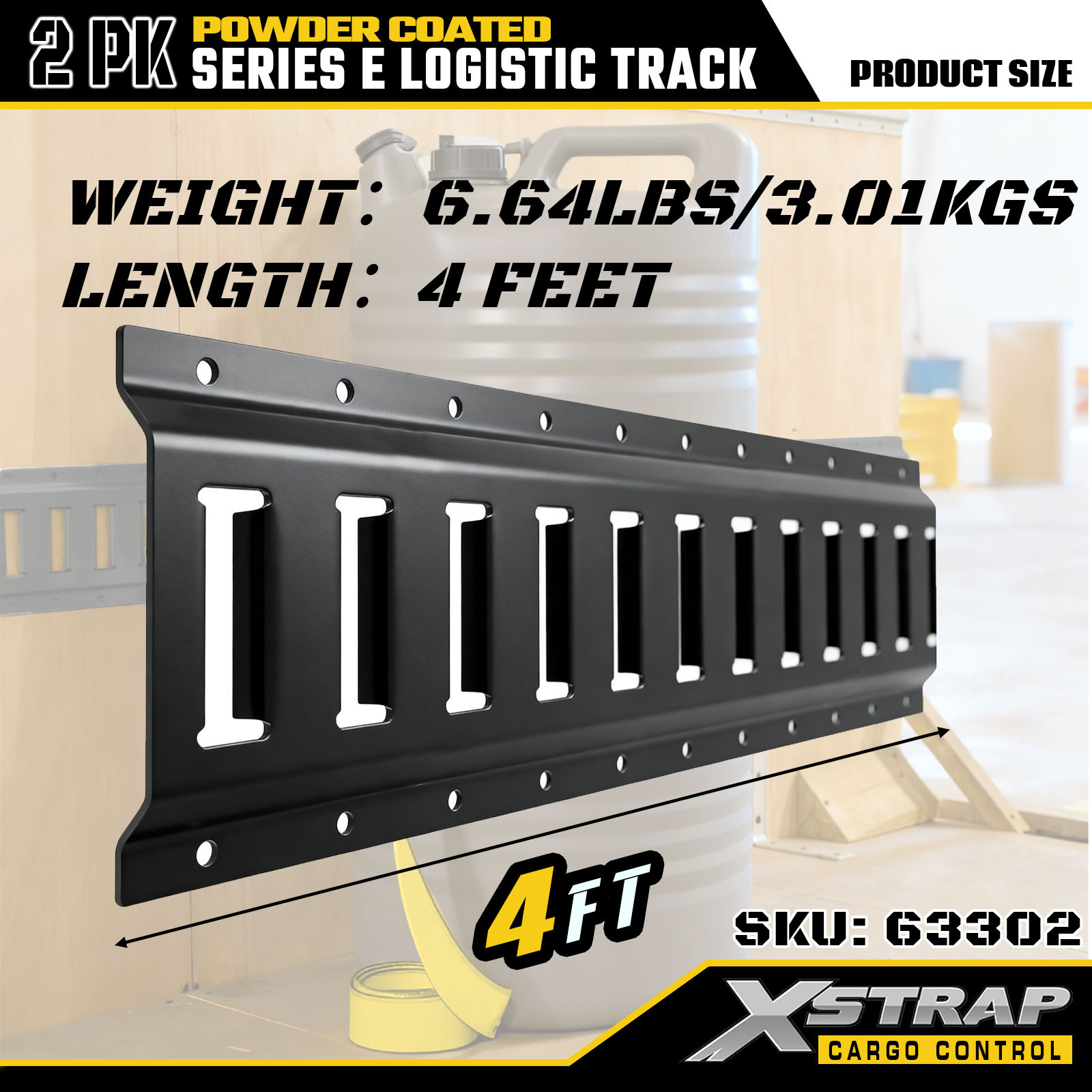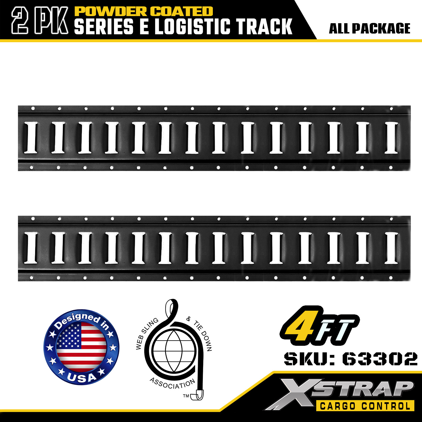 Xstrap 63302 4 jalkaa Harmaa E Logistic Track - 12-gauge teräs jauhemaalilla, kapasiteetti 6000LBS, 2PK lastinhallintaan