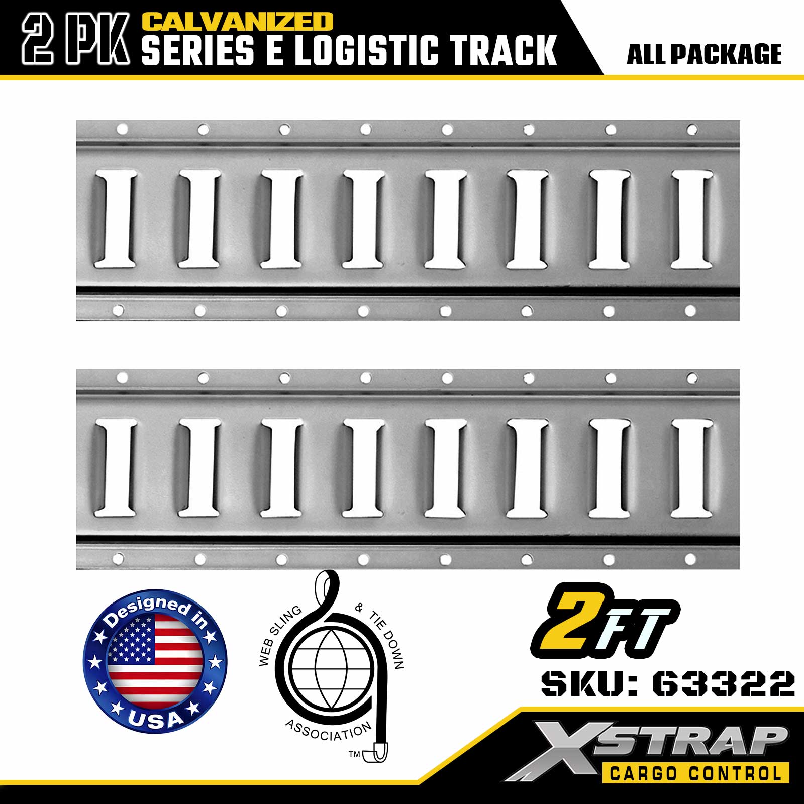 Xstrap 63322 2 jalkaa galvanoitua hopeaa E-tyypin tavarakisko - 12 gauge teräs galvanoidulla pinnoitteella, 6000LBS kuormitus, 2PK for
