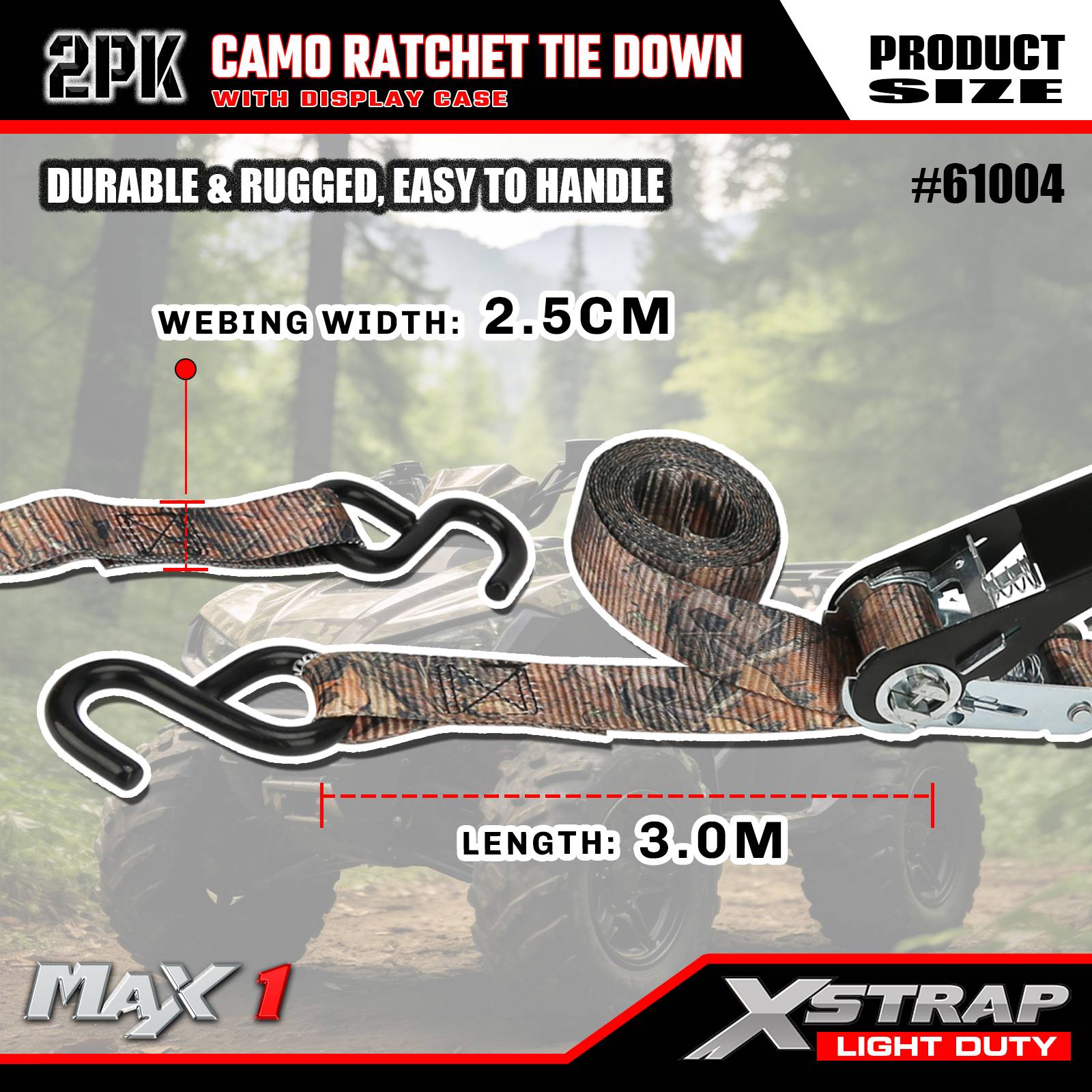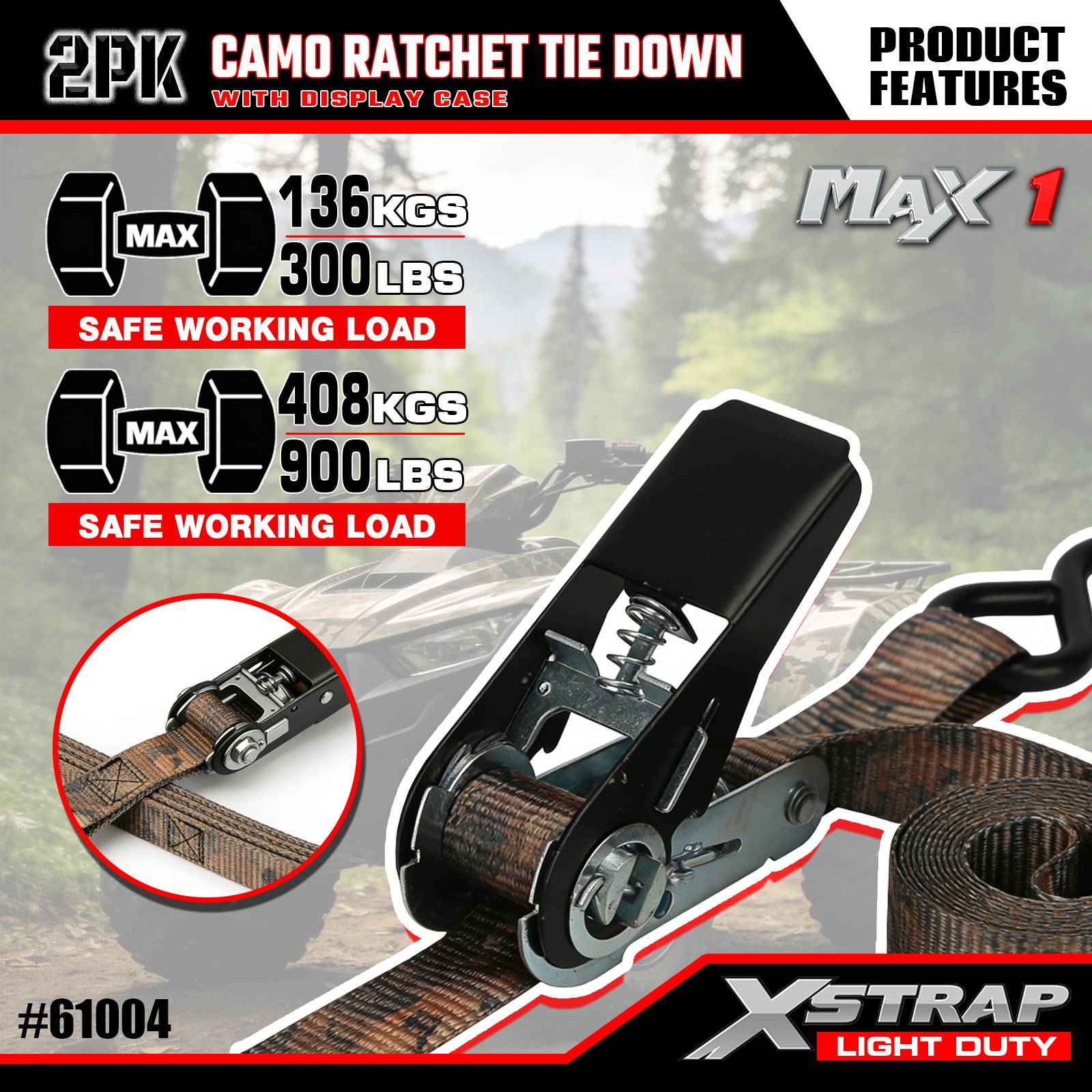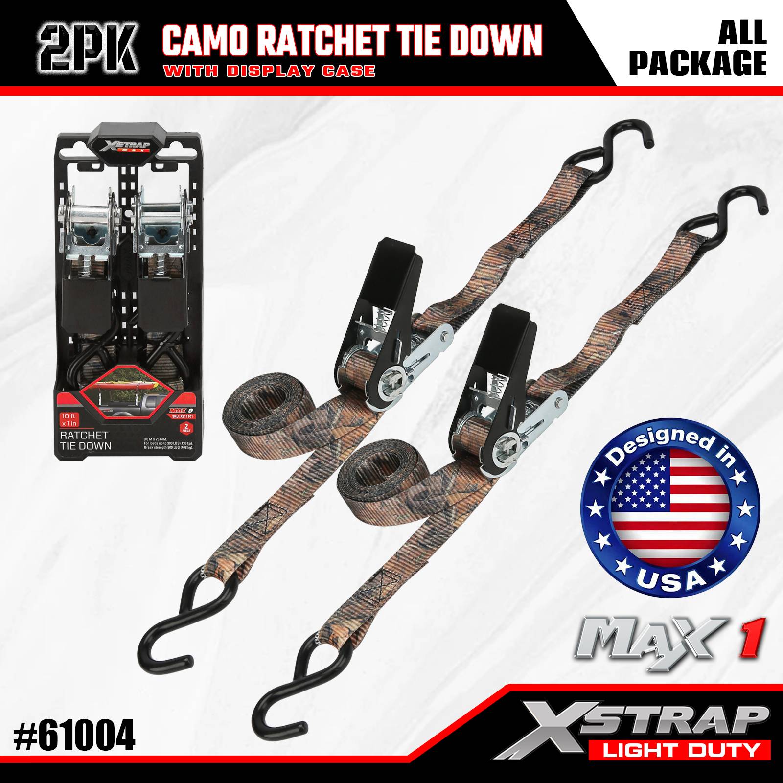 Xstrap 2 Pack Räikkäkiinnityshihnat, 1" x 10" - 300 paunaa kuormitussuoja - 900 lbs murtumislujuutta tukevat kuormahihnat liikkuviin laitteisiin, nurmikon varusteisiin, moottoripyörään, naamiointiin