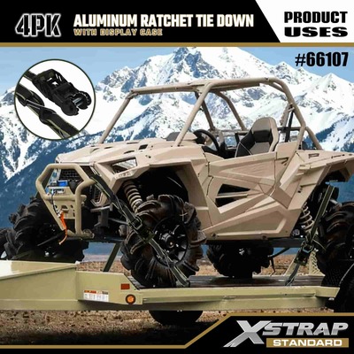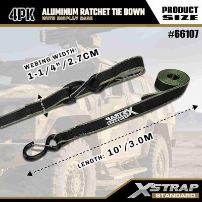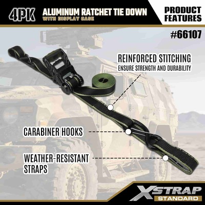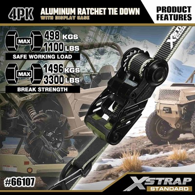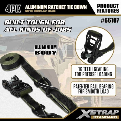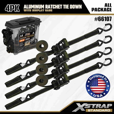 Xstrap 4 Pack alumiininen räikkänauha, 1-1/4" x 14" polyesterisidontahihna, jossa pehmeä silmukka Vedä räikkähihna, 1000 lbs:n kapasiteetti lastinkiinnityskiinnityshihnat S-turvakoukuilla lastinhallintaan tarkoitettua lava-autoa, katumaasturia, auton ylätelineitä moottoripyörään.