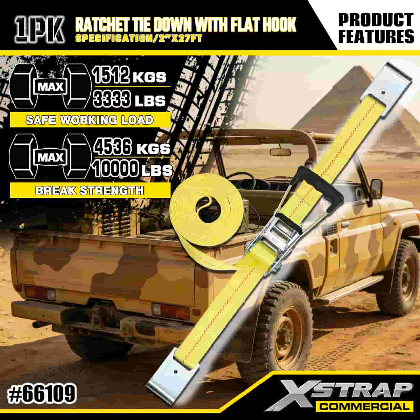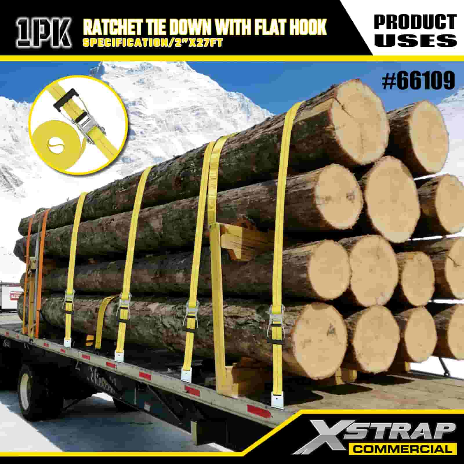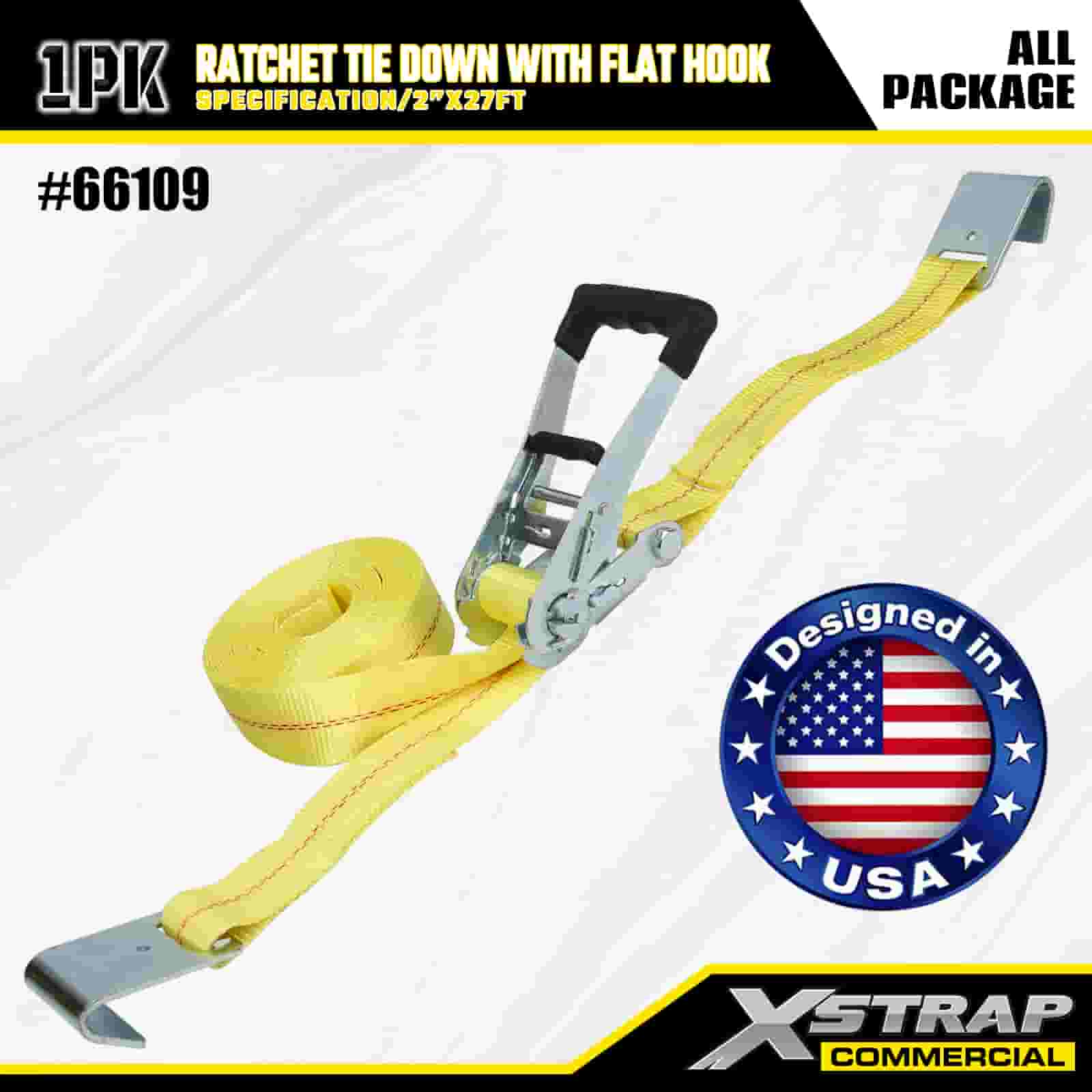 Xstrap Ratchet Solmittava litteillä koukuilla, 2" x 27" polyesterisidontahihna Vetoräikkähihna, 3333 lbs:n kapasiteetti lastinkiinnityskiinnityshihnat litteillä koukuilla lastinhallintaan tarkoitettuun lava-autoon, maastoautoon, auton ylätelineisiin moottoripyörään.