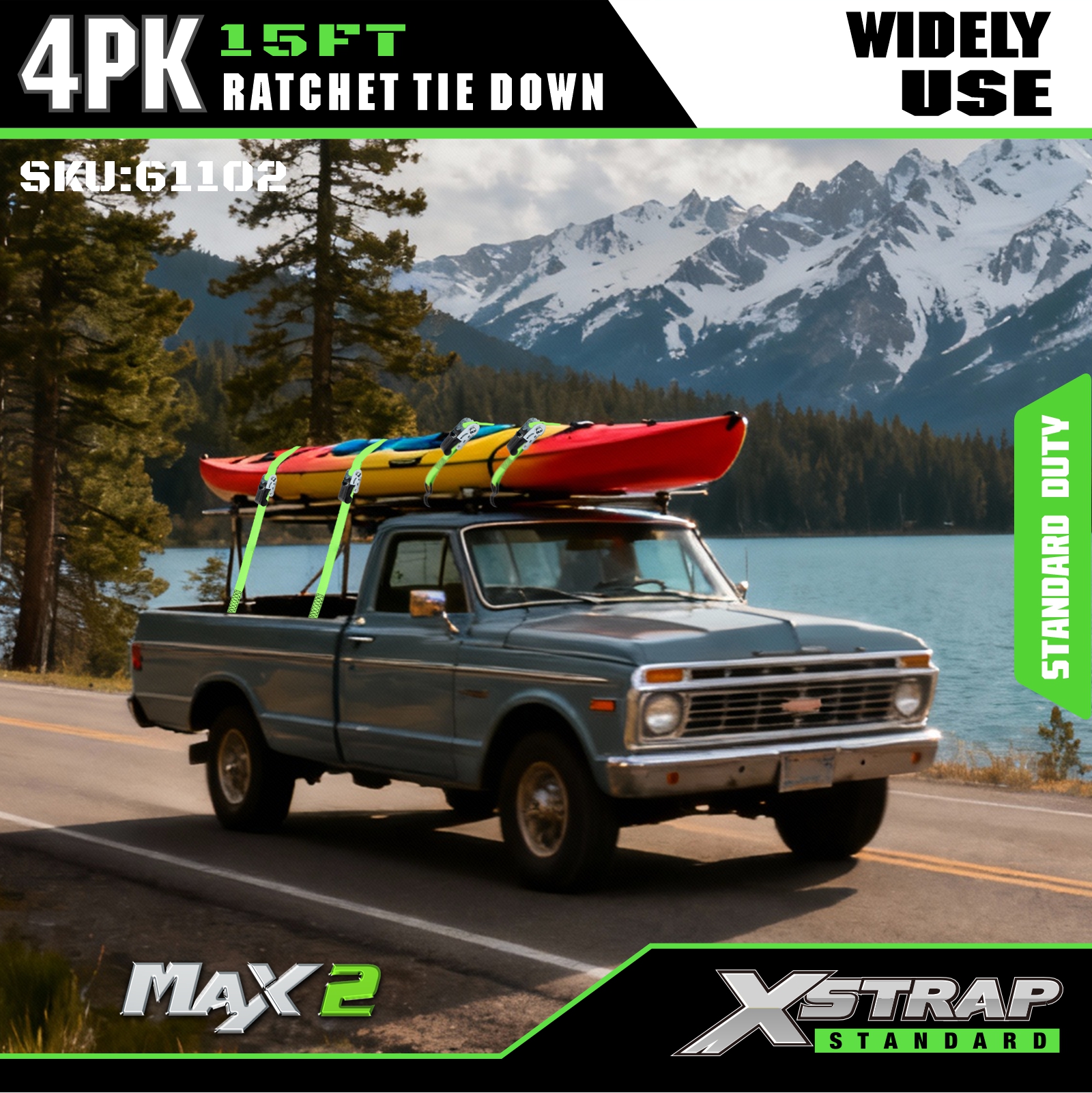 - Kätevä säilytys ja optimoidut mitat: Mukana omistettu kiristysnauhapussi vaivatonta säilytystä ja järjestämistä varten. Siinä on 1 tuuman leveys ja 15 jalkaa pitkä, turvallinen työkuorma 500 paunaa ja murtolujuus 1500 lbs luotettavaa suorituskykyä varten.