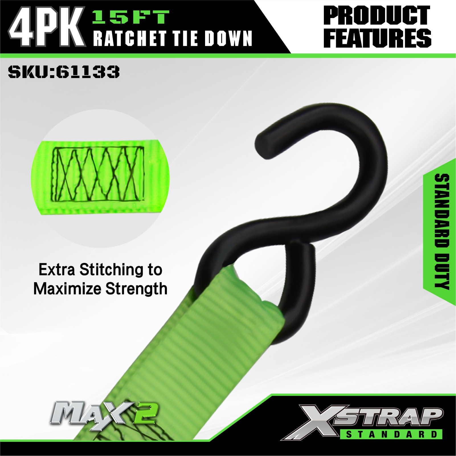 - Ruosteenkestävä ja suojaava laitteisto: Varustettu galvanoiduilla teräksisellä räikkäkomponenteilla (korroosion estämiseksi) ja mustalla päällystetyllä S-koukulla – pinnoite suojaa ajoneuvon/lastin pintoja naarmuilta ja varmistaa samalla tiukan ja vakaan pidon.